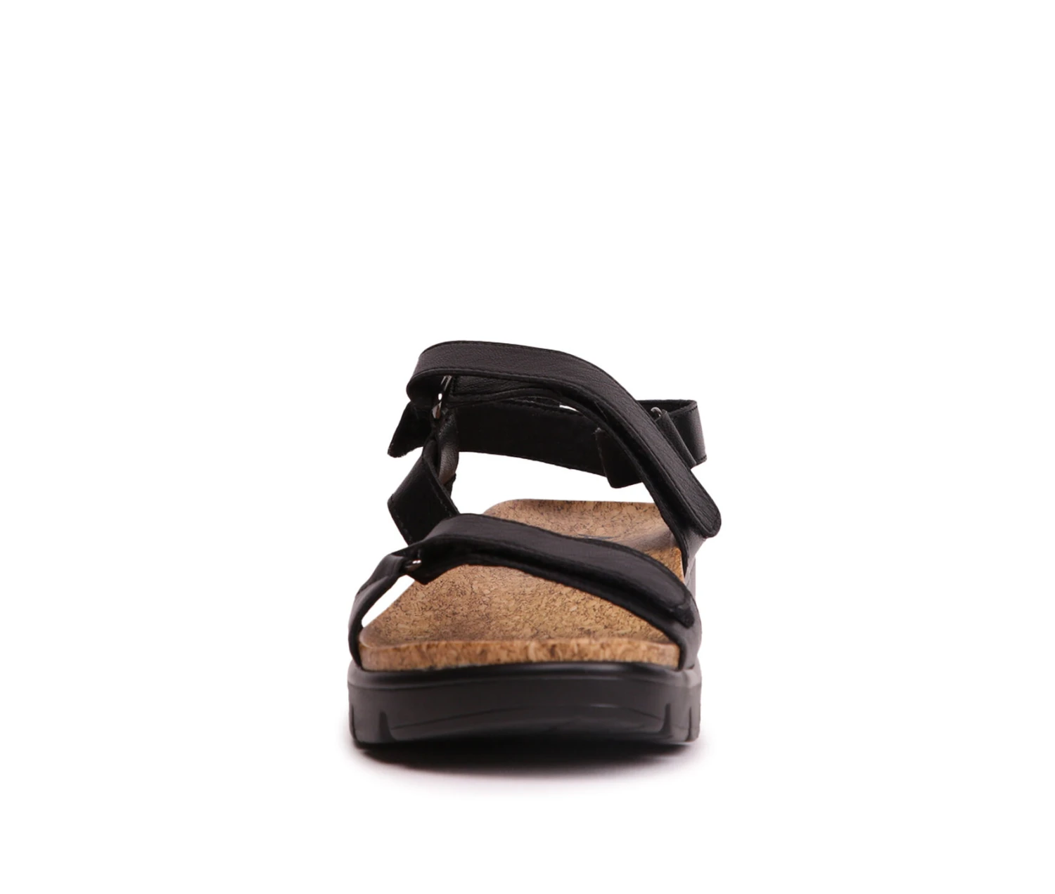 - A fun and flattering platform, vegan, sandal is a wonderful addition to your summer wardrobe. Three adjustable hook-and-loop straps allow for a customized, secured fit. Contour molded footbed offers ample arch support for all day activity.