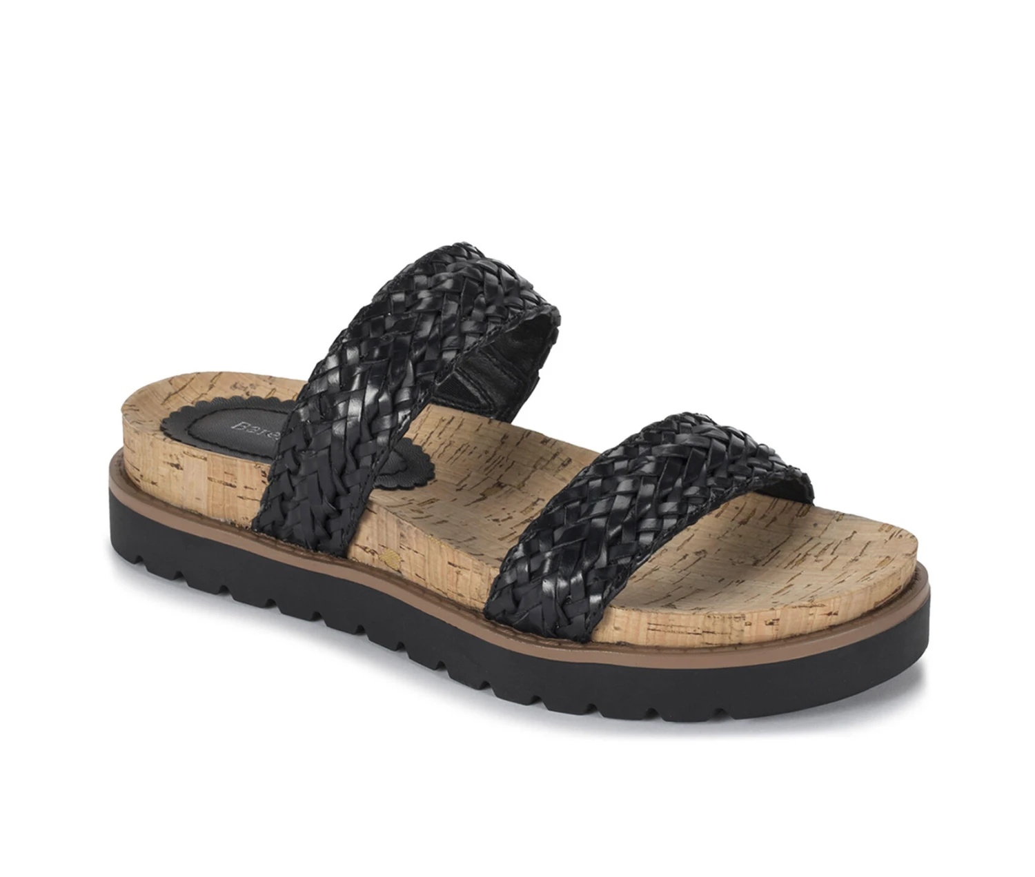 - Summer fashion is calling and the Baretraps Deanne women’s slip-on sandal is ready to answer. Featuring stylish braided synthetic leather straps paired with a cork footbed made with a comfortable, lightweight sole construction.