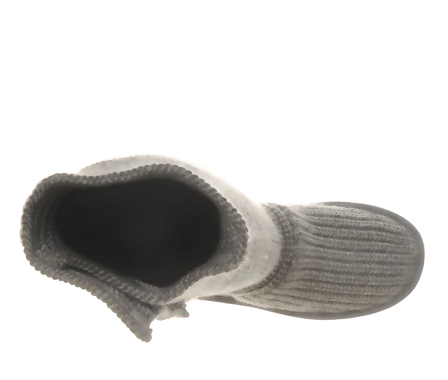 - Women’s Bearpaw Casual Knitted Convertible Boots. Keep warm and comfy in the fashionably woven Bearpaw Knit Tall! With genuine sheepskin footbed, full knitted upper, and toggle details, this boot gives you sweater-like warmth and style. Wear the Bearpaw Knit Tall up or folded down for two cozy styles in one!