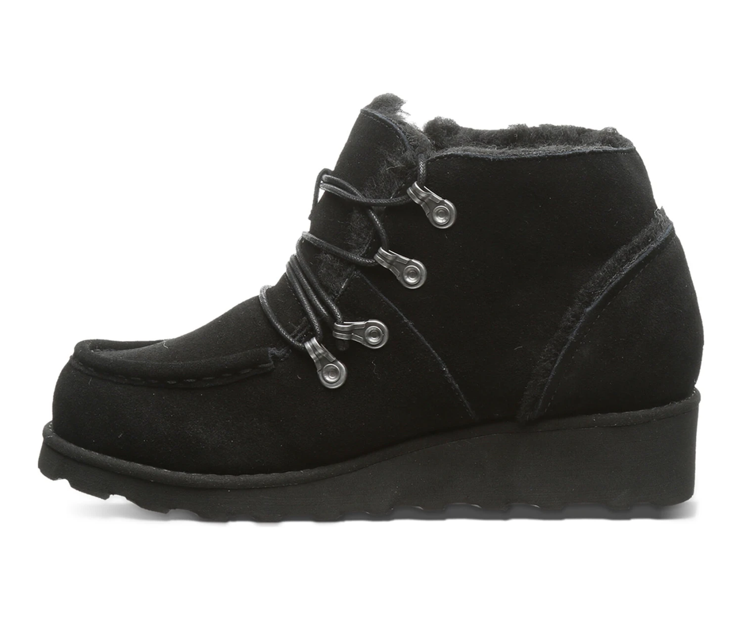 - Looking for a boot that keeps you toasty warm but flaunts a unique style? Look no further! These heeled booties are a gorgeous style for an outing at your favorite restaurant, even in wild winter weather! They also add a bit of chic to your go-to casuals. Either way, the NeverWet® Technology will keep your feet dry and the comfort sheepskin footbed will fend off foot fatigue while you strut your stuff.