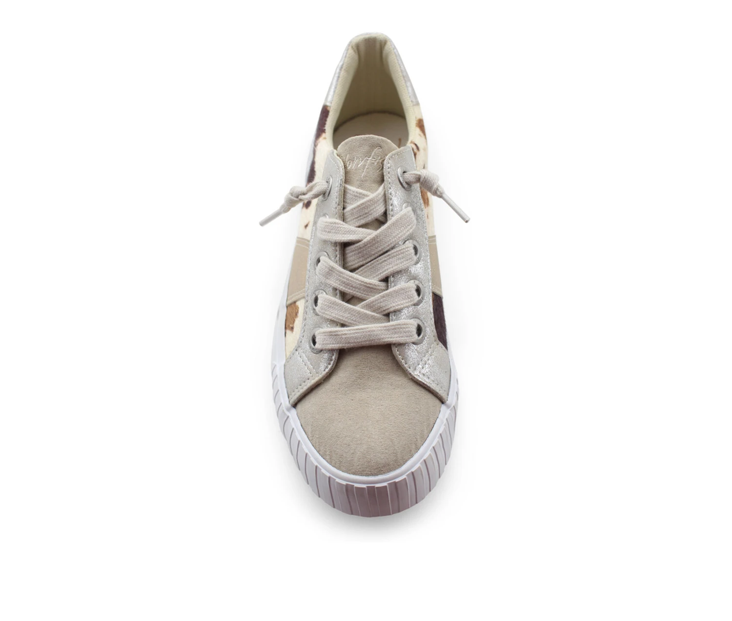 - Wallow in the animal print surf with the Wave women’s slip-on sneaker. Featuring a faux fur & metallic faux leather upper with a western-inspired cow print, this slip-on sneaker has knotted laces. The insole cushions your foot, while the outsole has vulcanized bumpers on the toe and heel.
