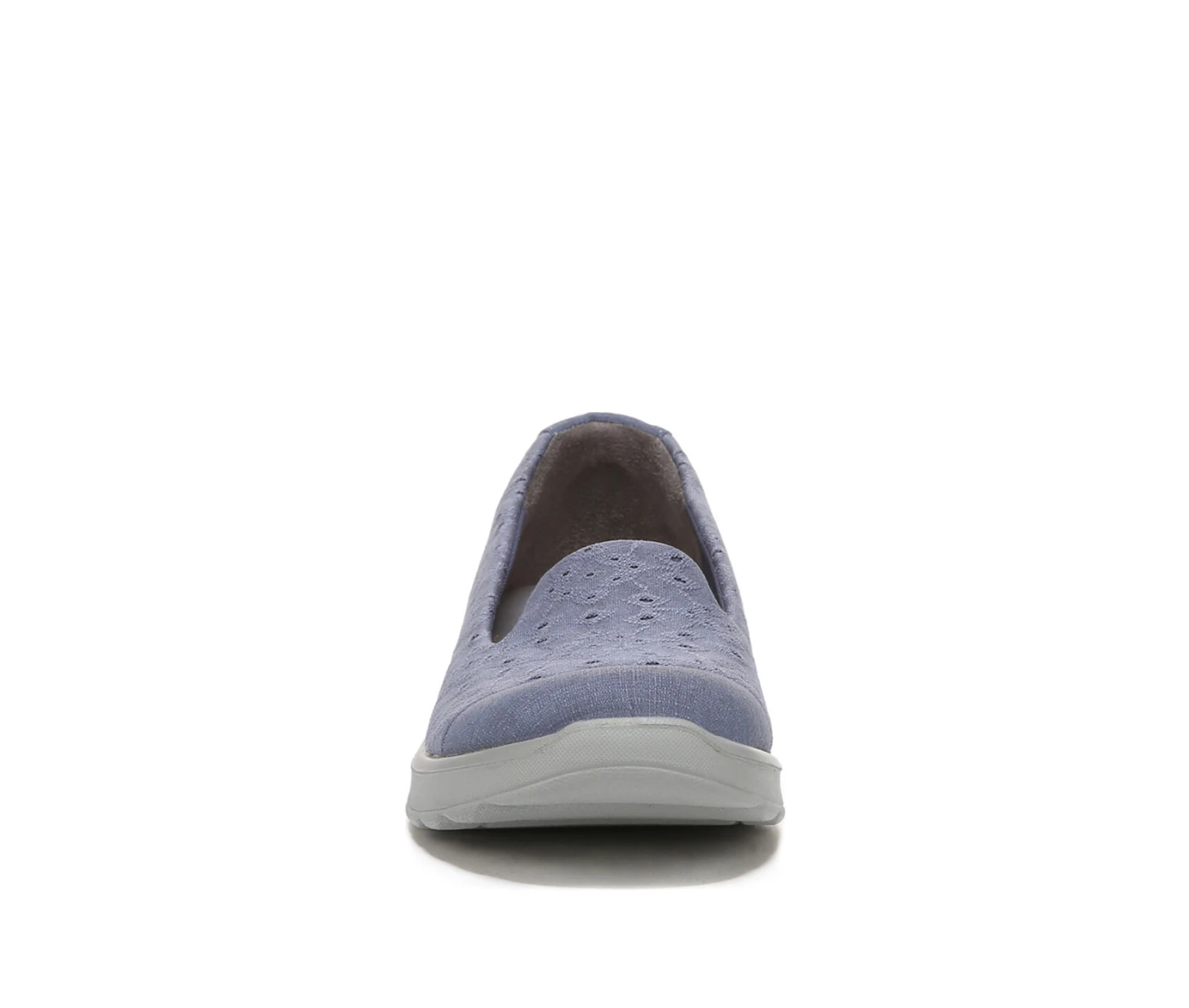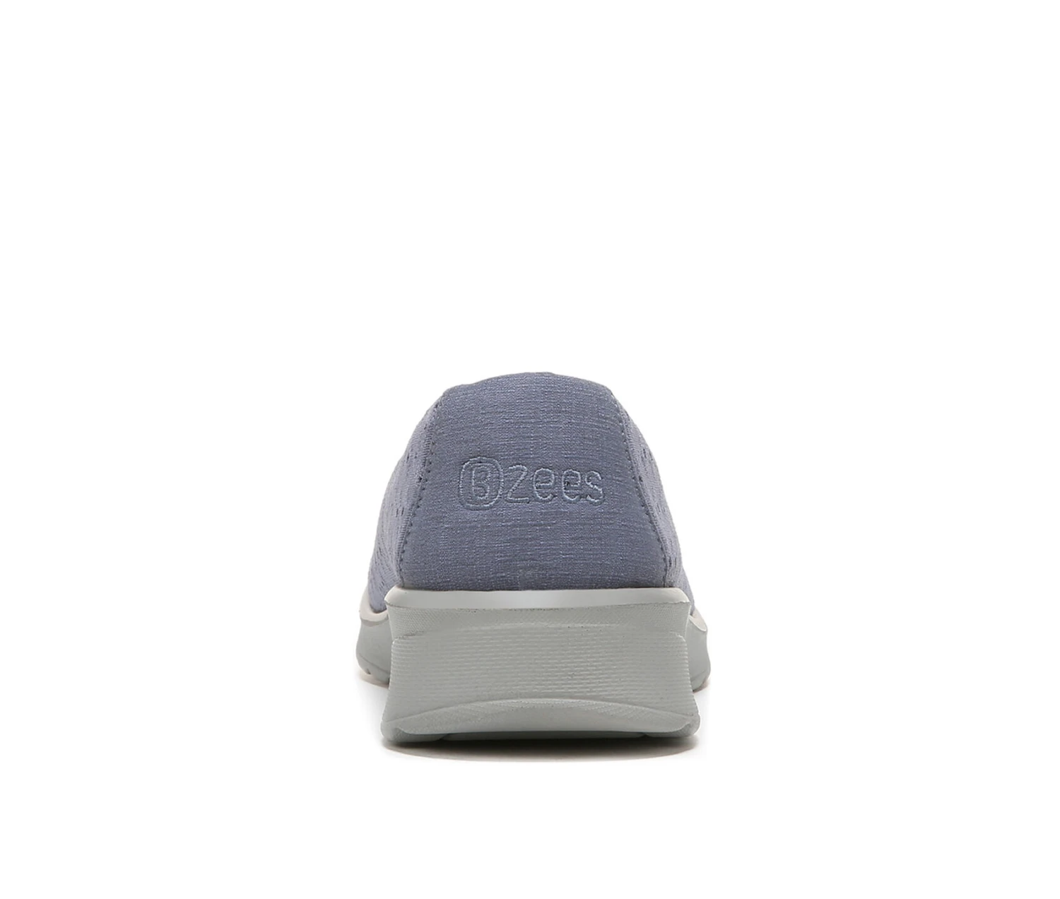 - Out of this world! Machine washable womens slip on shoes with a pretty eyelet pattern and cushy-comfy feel. Stretch fabric upper with round toe. Slip-on fit. Grooved outsole. BLOOM™ materials: Sustainable algae-infused foam layer under the insole. BZEES Cloud Technology: Designed so you’ll feel weightless, energized and free. Air-Infused Outsoles: Bzees are ultra-lightweight, soft, & bouncy. Dynamic Stretch Uppers: Stretch fabrics move & groove with you. Free-Foam Footbeds: Crazy-cushy anatomical insoles are blow-your-mind comfy. DreamPuff: microfiber heel padding that hugs your ankle for a secure fit. SoCush Memory Foam arch support. Anti-Microbial and Odor Control technology. 1 1/4 wedge inch heel. Machine Washable: Wash on cold and air dry.