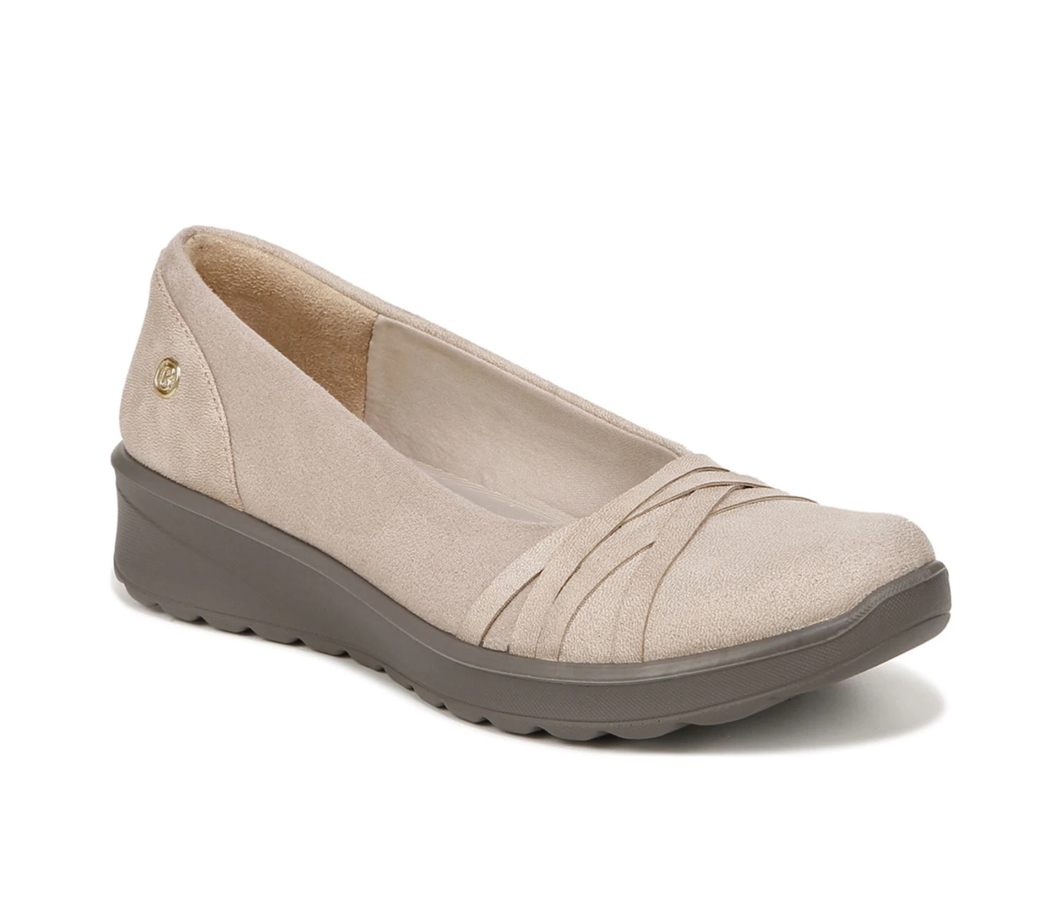 - Feel-good faves! Go here, there, or anywhere in womens slip on shoes up for anything on your agenda. Stretch leather fabric upper with partially recycled linings and round toe. Slip on fit. BLOOMâ„¢ materials: Sustainable algae-infused foam layer under the insole. BZEES Cloud Technology: Designed so you’ll feel weightless, energized and free. Air Infused Outsoles: Bzees are ultra-lightweight, soft, & bouncy. Dynamic Stretch Uppers: Stretch fabrics move & groove with you. Free Foam Footbeds: Crazy-cushy anatomical insoles are blow-your-mind comfy. Get Width It: Every pair of Bzees comes in wide width shoes for women. SoCush Memory Foam arch support. Anti-Microbial and Odor Control technology. 1 1/4 inch heel. Machine Washable: Wash on cold and air dry.