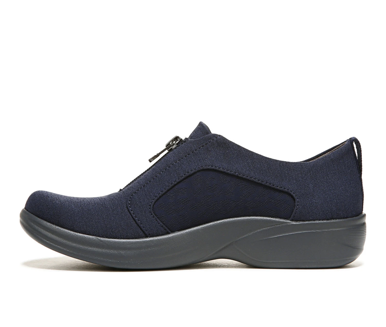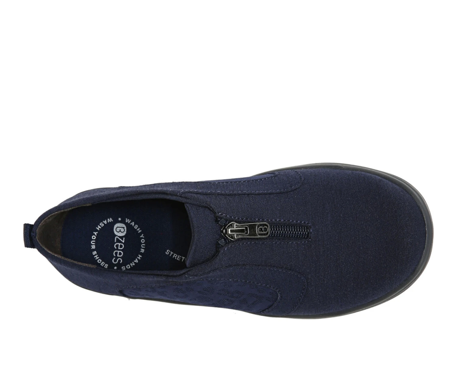 - Poetry in motion! This lightweight, machine-washable zip-up sneaker adds comfort to your every move. Stretch fabric upper with partially recycled linings and round toe. Zip up front. Stitch detailing. Sustainable algae-based foam layer under the insole. BZEES Cloud Technology: Designed so you’ll feel weightless, energized and free. Air-Infused Outsoles: Bzees are ultra-lightweight, soft, & bouncy. Dynamic Stretch Uppers: Stretch fabrics move & groove with you. Free-Foam Footbeds: Crazy-cushy anatomical insoles are blow-your-mind comfy. SoCush Memory Foam arch support. Anti-Microbial and Odor Control technology. 1 inch heel. Machine Washable: Wash on cold and air dry.
