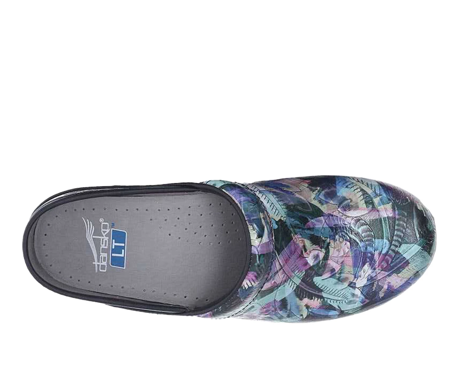 - Featuring a cushioned footbed, Dansko patent-pending compression molded EVA outsole, and stapled construction, this soft and comfortable clog is made with stain-resistant, wipe-clean leather in Dansko exclusive novelty prints.
