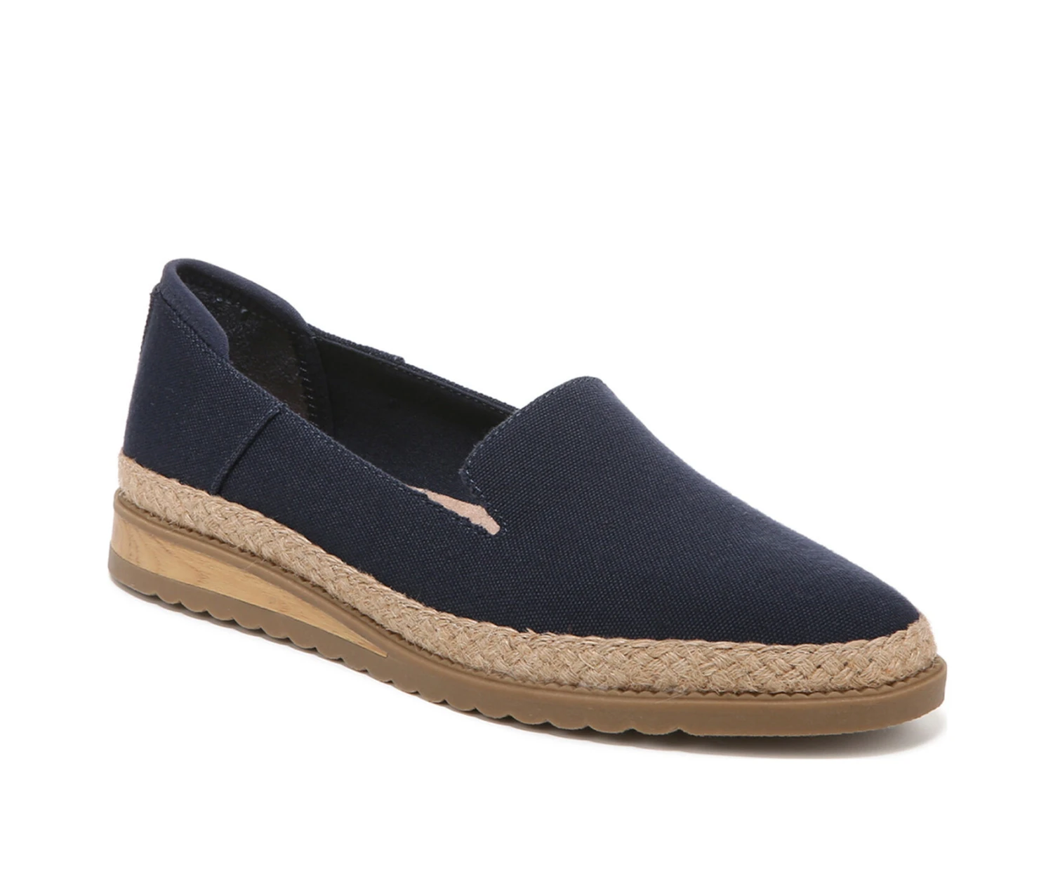 STYLE: Casual slip-on with espadrille detail and a low 3/4 inch wedge heel.
