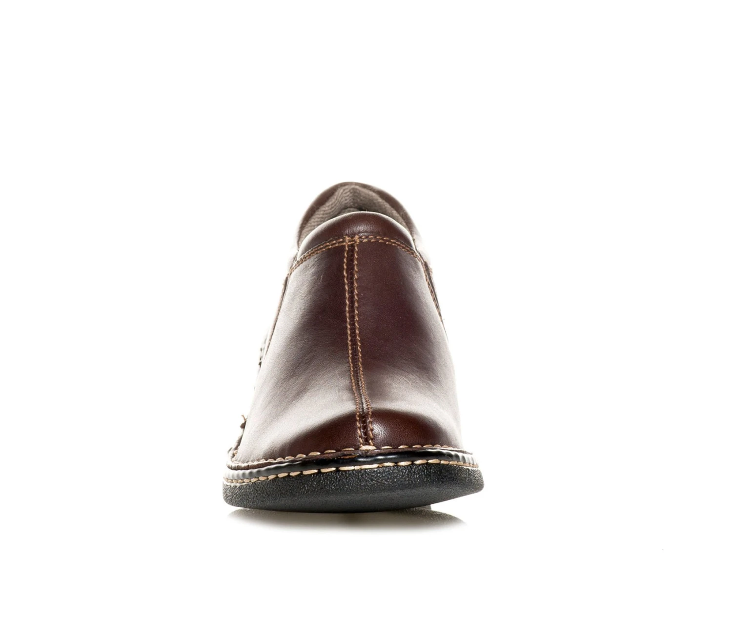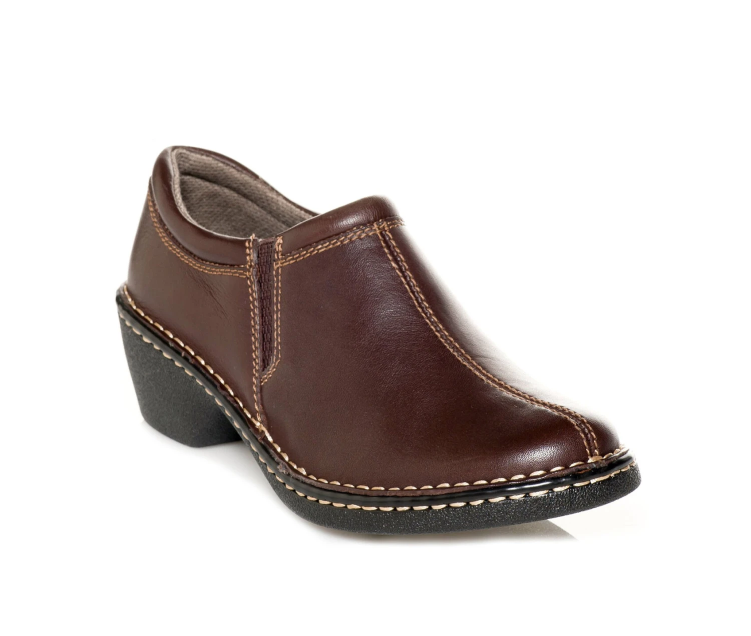 - Eastland Women’s Casual Leather Slip-On Clogs. The women’s Eastland Amore is a comfortable and sleek slip-on shoe with a full grain leather upper for additional fashion. Pair these hand sewn slip-ons with khakis or denim and enjoy the casual comfort of Eastland.