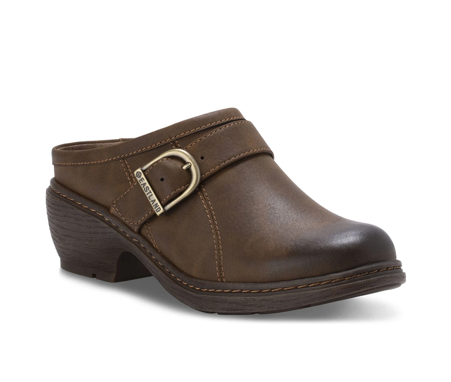 - The Cameron buckle clog complete with hand stitched details for any outfit. Fabric-lined synthetic upper. Fabric-lined synthetic upper. TPR outsole for great flexibility, slip resistance, light weight and durability. Heel Height: 2 1/4″.