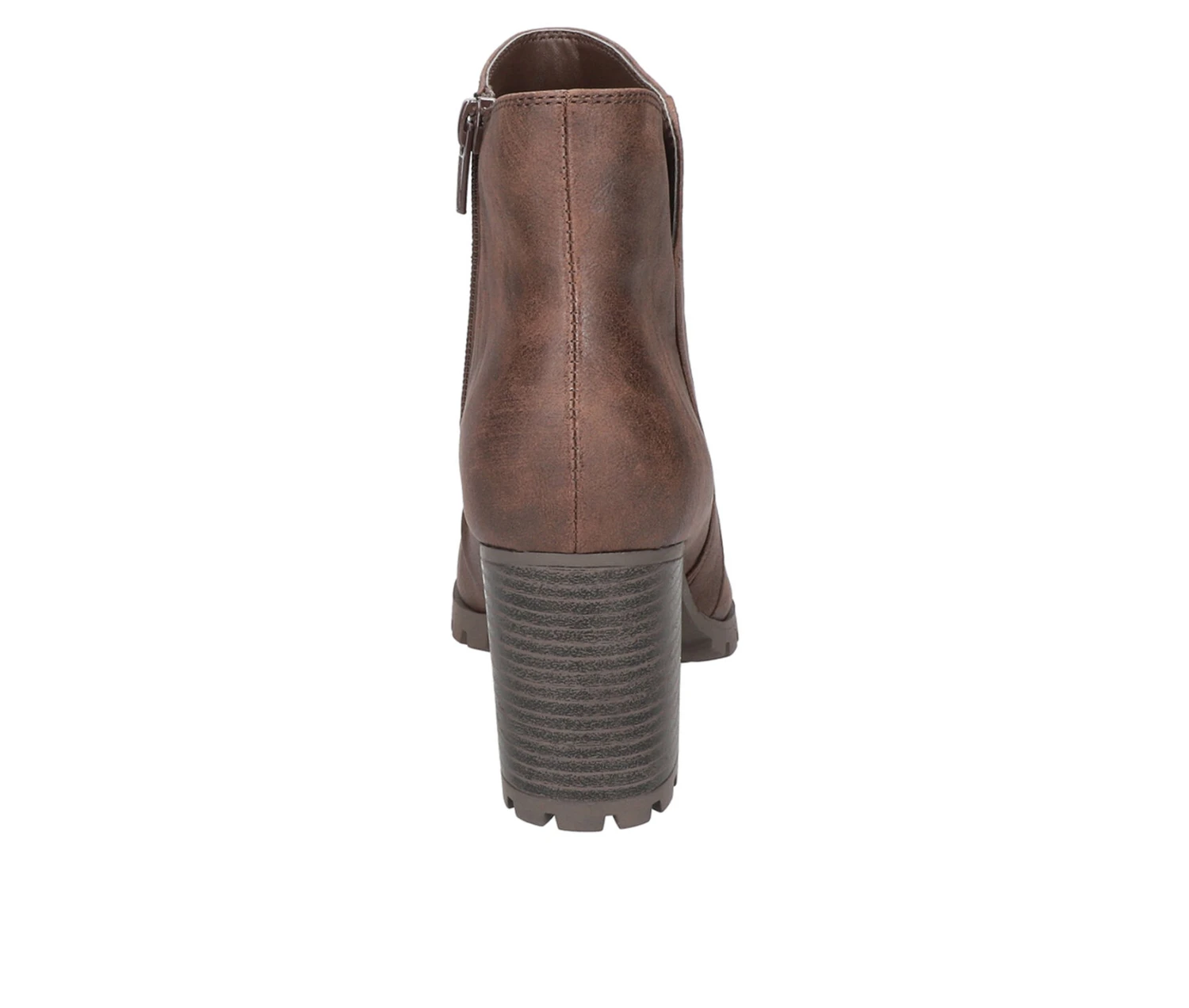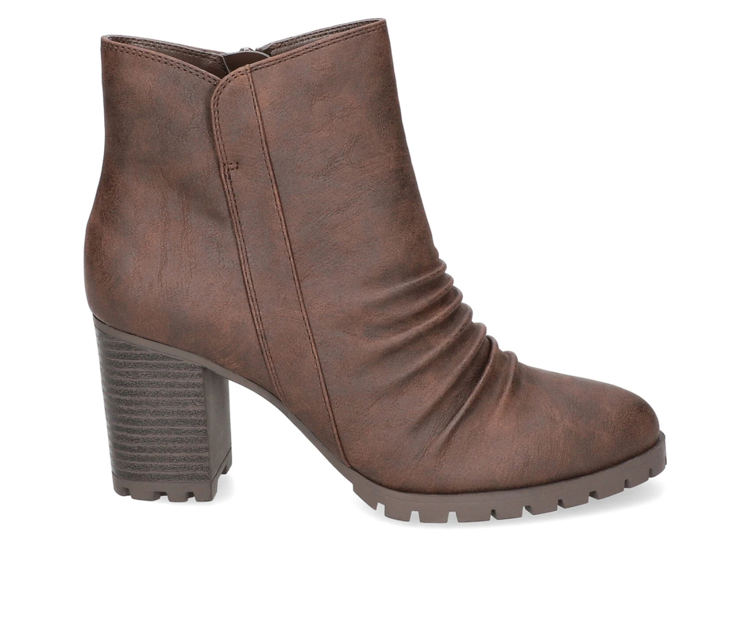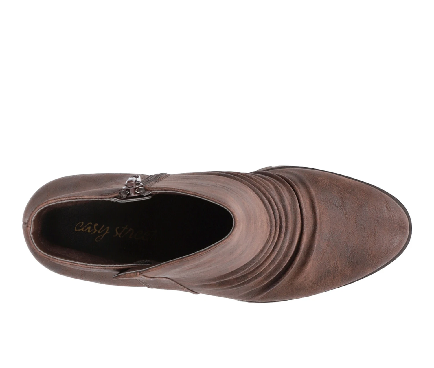 - The Easy Street Carrow ankle boot is about blending classic contemporary designs into one fashionable statement piece. Crafted with an on-trend rusched upper, block heel, and mini-lug outsole, making this boot offers a versatile option for all your favorite outfits. The padded insole provides added comfort and an easy on/off inside zipper. Together in one eye-catching look, the comfort and classic silhouette is set to become your go-to boot of the season.