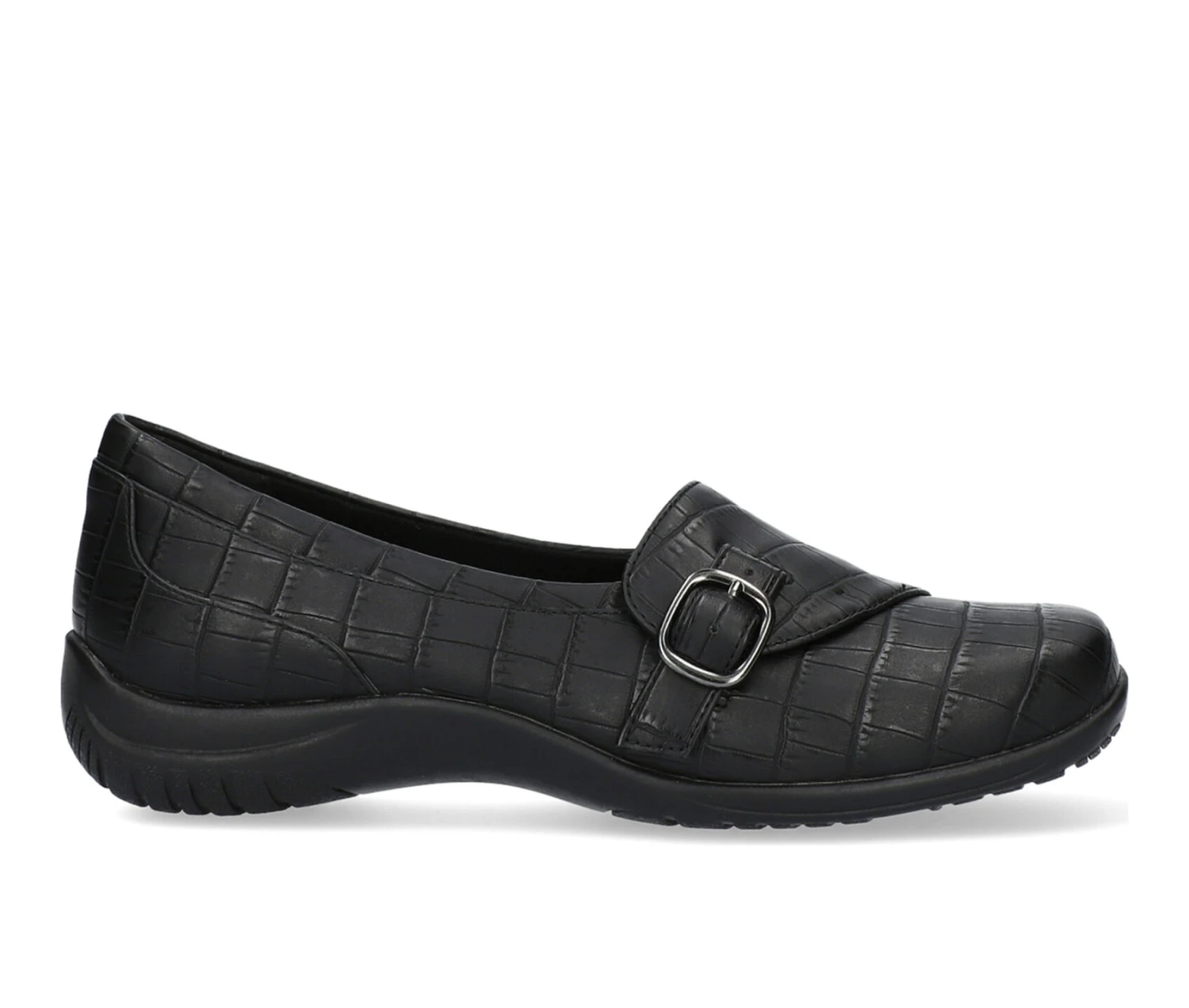 - Easy slip-on design with an adjustable buckle closure with hidden elastic goring for an easier fit