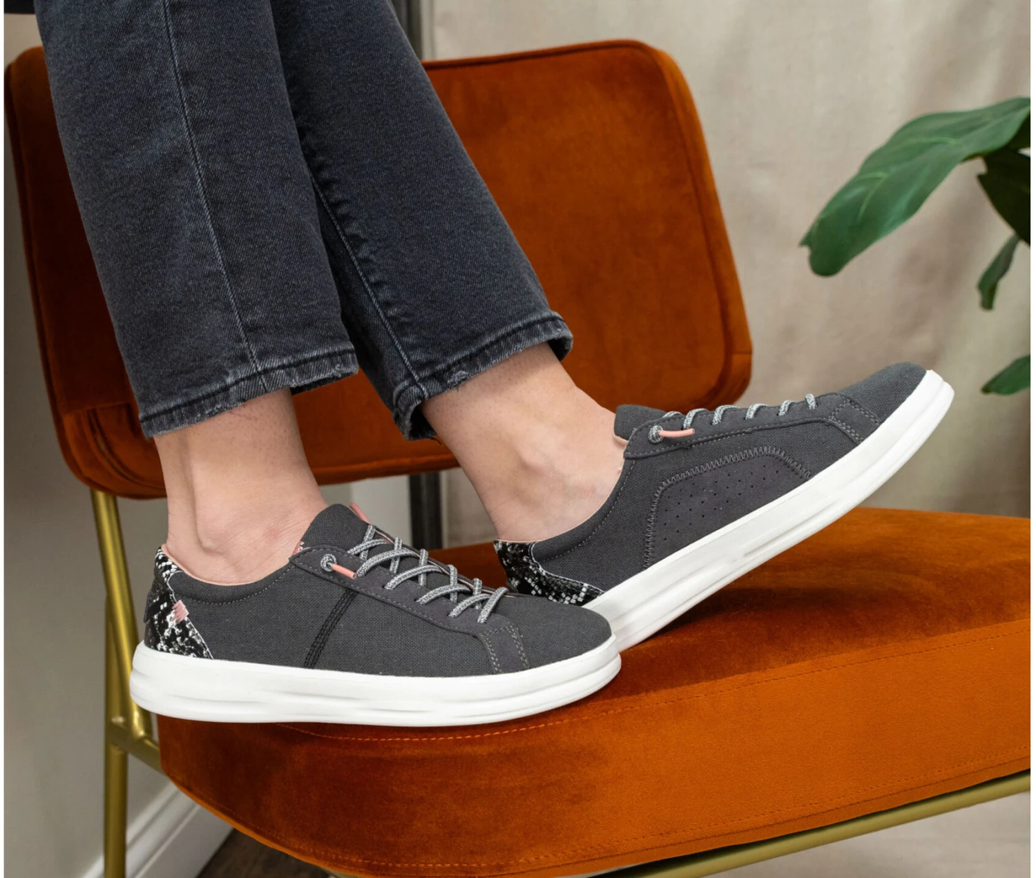 - A cotton slip-on sneaker with an iconic shape and sturdy, comfy HEYDUDE construction. Plus custom-look details. Slip this on and head on out to take on any day. Featuring our easy-on system with no-tie, elastic laces and an ultralight EVA outsole to make even your busiest days, at ease.