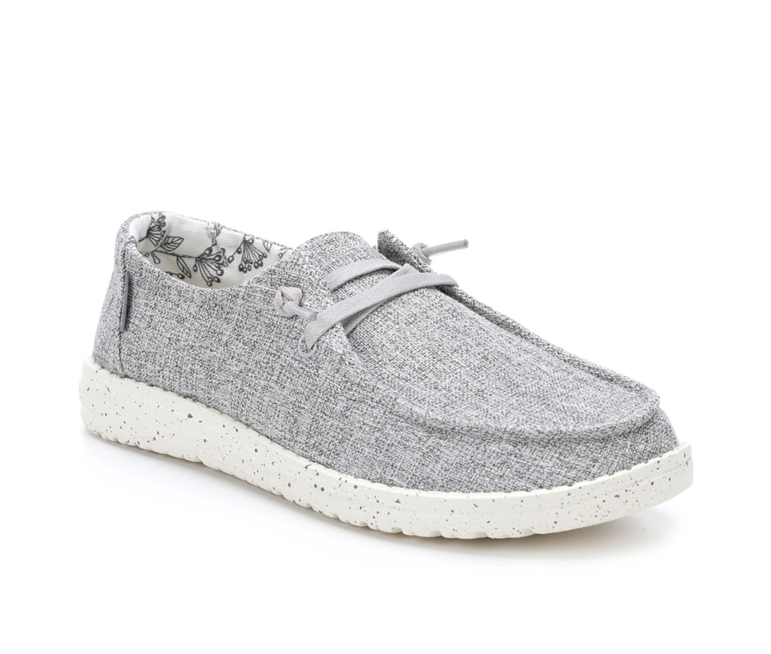- The iconic low-top moc in rugged, breathable organic cotton canvas. Distressed edges for a lived-in look. Built on our patented UltraLIGHT EVA outsole and featuring our Easy-On System. The Wendy provides everywhere comfort, but with a syle ideal for women who enjoy life’s ever-changing journey. The relaxed look and feel allows you to explore your passions and experience new places with the confidence your feet will fit in to any occasion.
