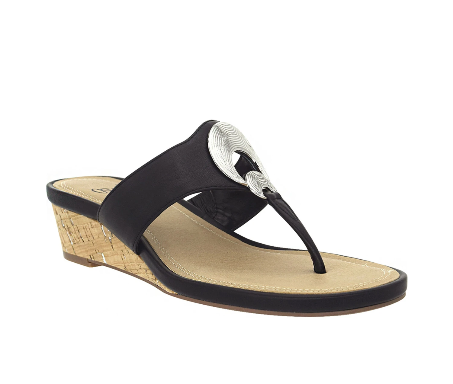 - Classic thong sandals are reinvented by way of a stylish ornament, a vegan leather upper, an ultra-comfortable cushioned memory foam footbed, a flexible insole, and a vintage-look cork wedge. Easy to wear, the Impo Rocco sandal will become an elevated basic in your summer wardrobe! Wear these with an organic cotton kaftan dress, or any length of shorts.