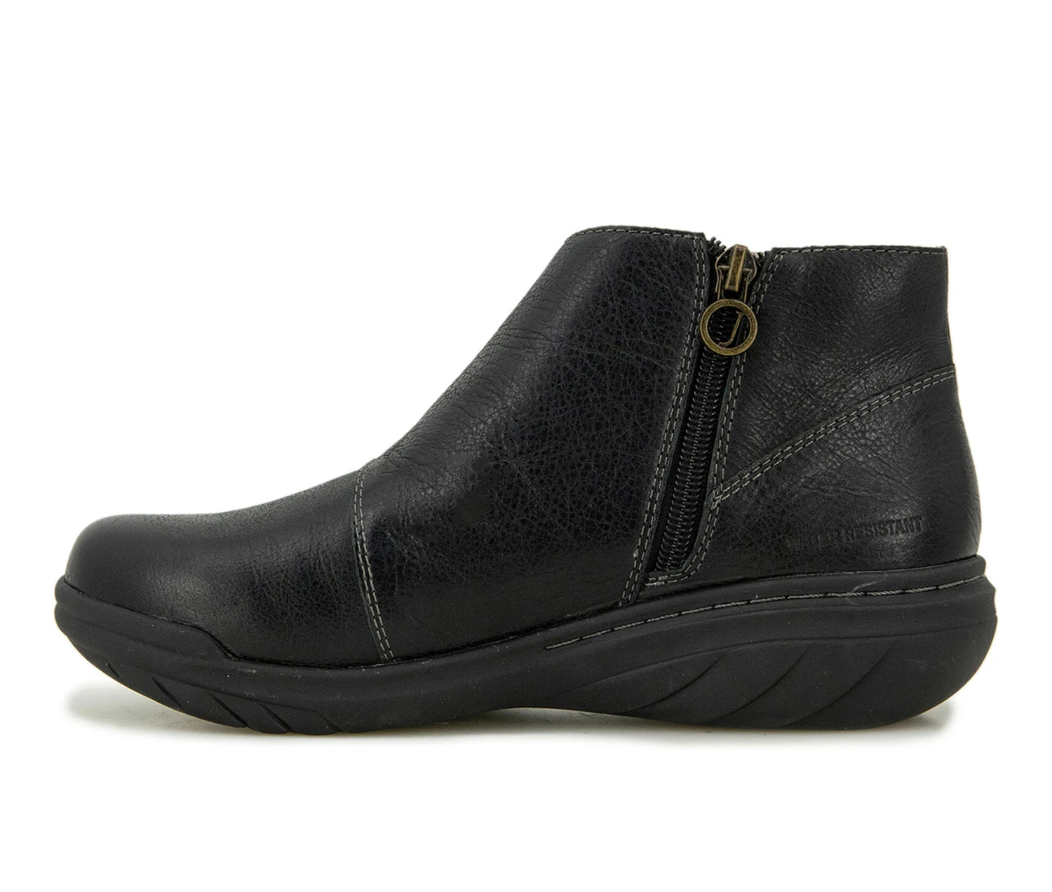 - Enjoy days about town while rocking the Bary. This simple leather boot keeps the frills to a minimum but creates some visual intrigue with an asymmetrical frontal strap. Velcro closure and an inside zipper makes for easy on and off, while All Terra traction keeps you steady on any terrain and memory foam insoles keep you comfortable on your feet all day long.