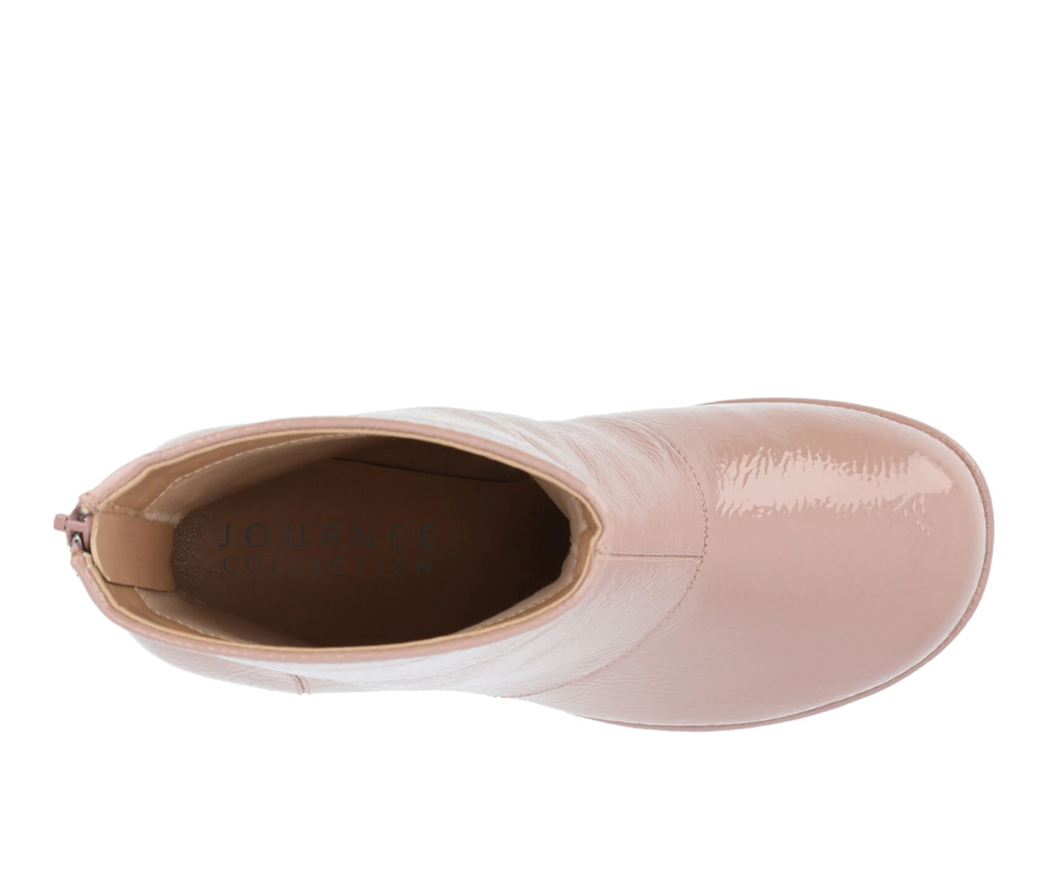 - Introducing Aylani, the modern and sleek bootie from Journee Collection. With a 3 in block heel featuring a platform at the toe, zipper at the heel, and round-toe, Aylani is the perfect combination of bold and minimalistic style. Made from a 4 mm Tru Comfort Foamâ„¢ insole and crinkled patent vegan leather with a center seam, Aylani is the must-have addition to any wardrobe that wants to make a statement.