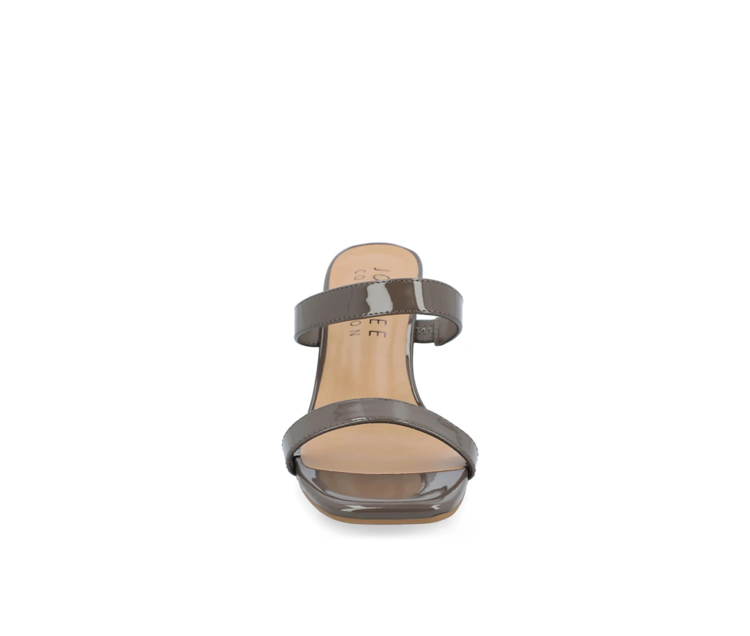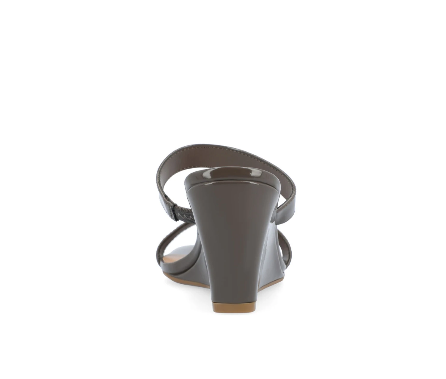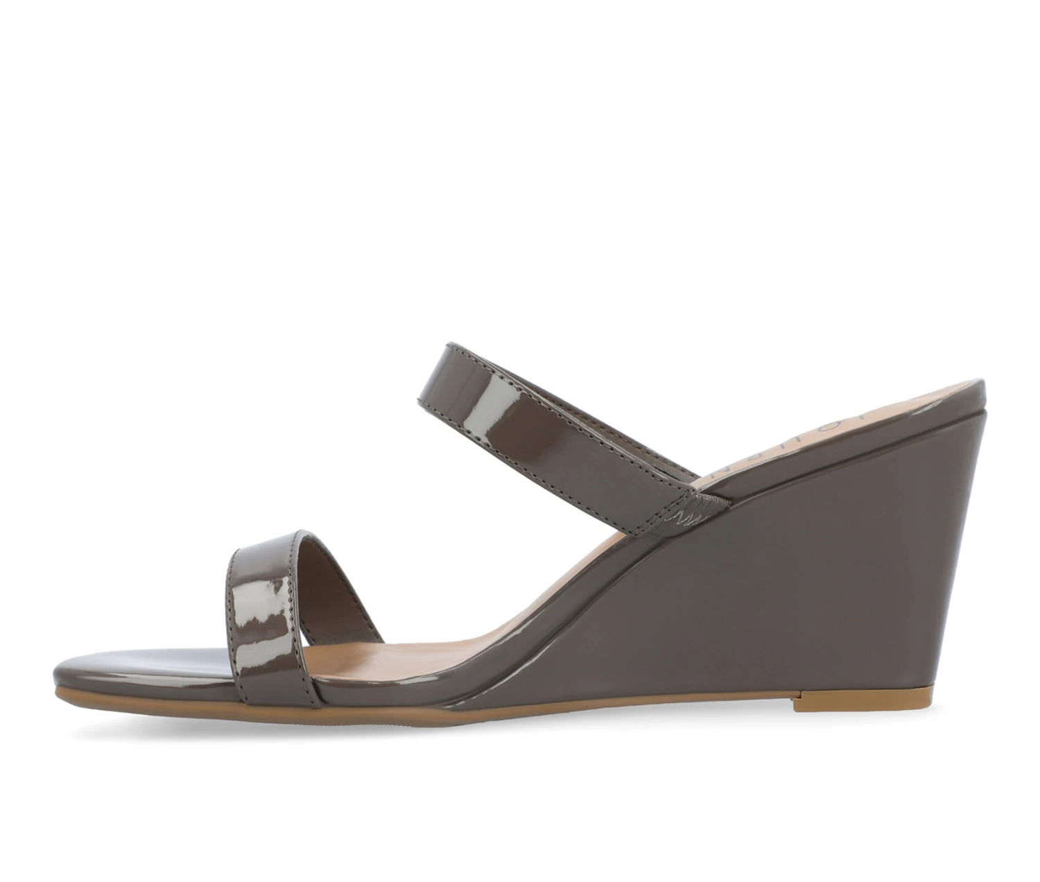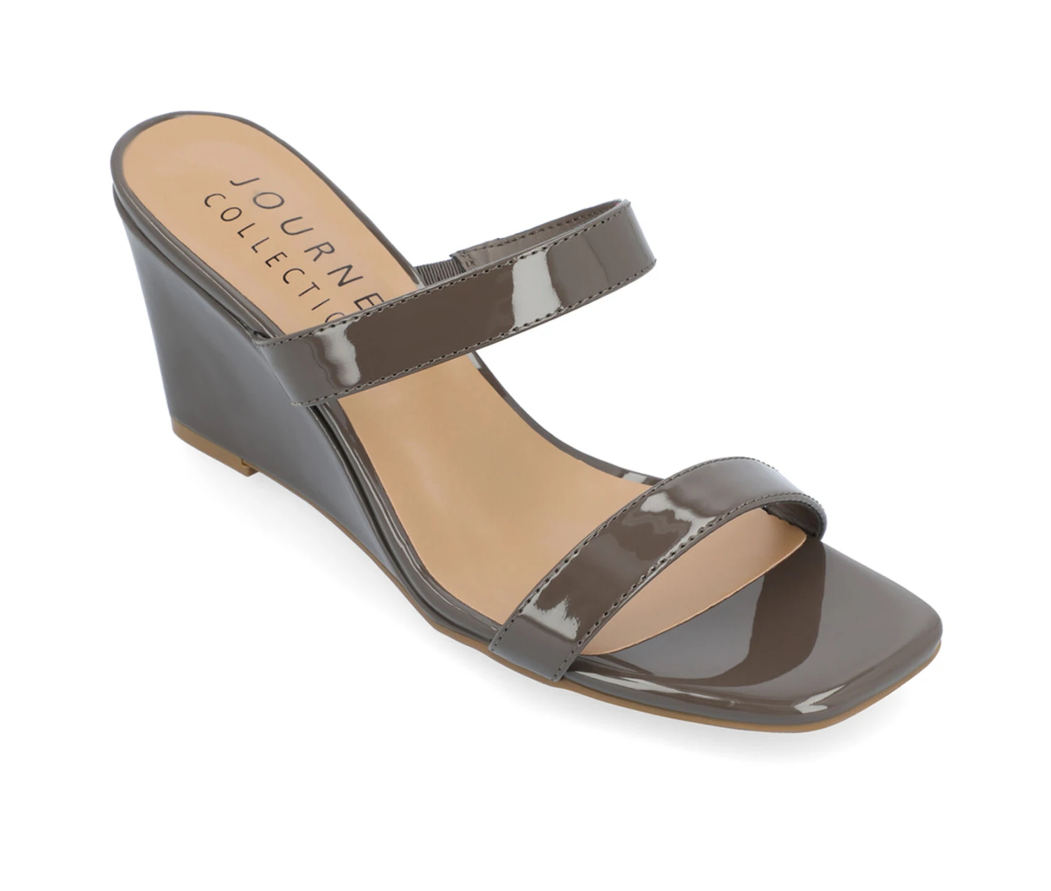 - Our Clover sandal from Journee Collection will have you standing out from the crowd in style and comfort with their vegan patent leather. A covered wedge heel, toe band style, and 4 mm Tru Comfort Foam™ insole offer the perfect fit. As a bonus, their slip-on feature and open square toe will give you the perfect finishing touch for your outfit.