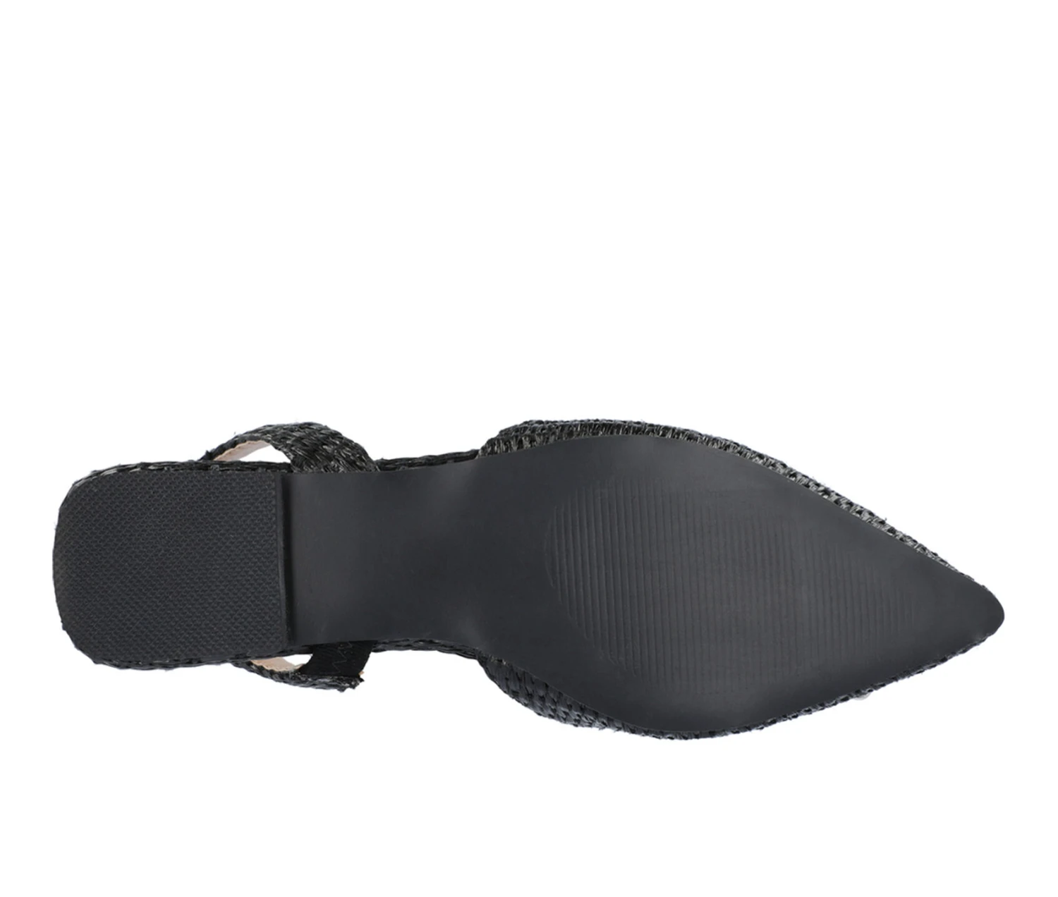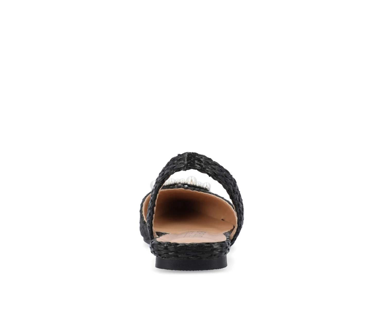 - The Hannae flat from Journee Collection will take you from work to a nice dinner outing with ease. This glam flat can match just about everything thanks to the raffia-inspired material, sling-back strap, gem detail and pointed-toe. To add a little something extra, their padded footbed and pull-on closure will keep your feet comfortable with every step.