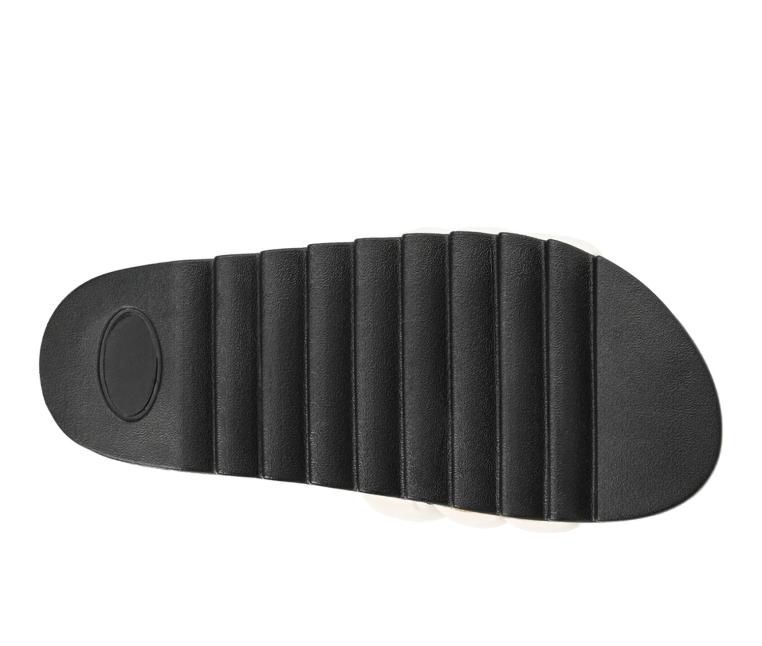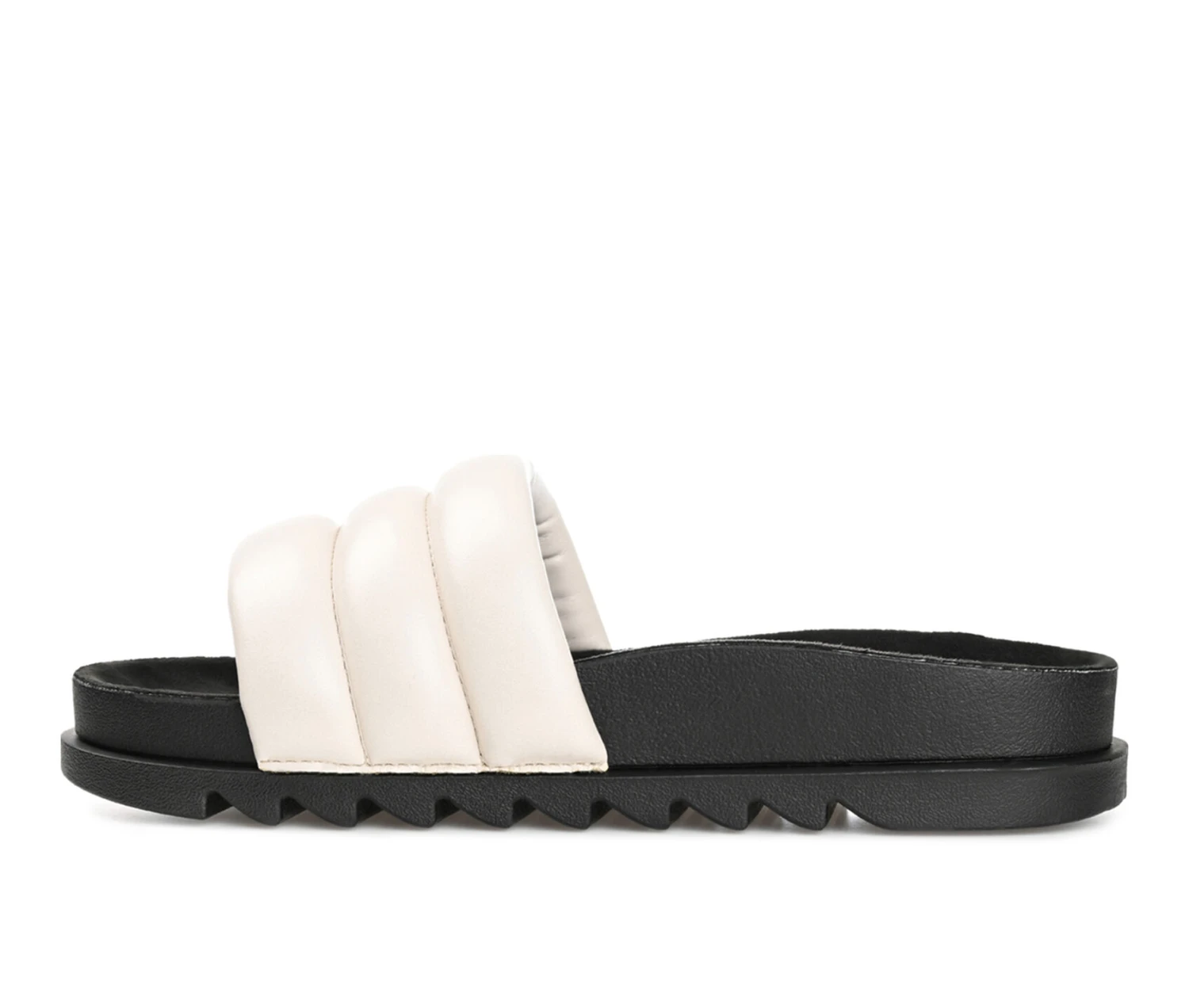 - A comfortable sandal that you can wear to the pool or the park. The Lazro by Journee Collection is a sporty slide with a 4 mm Tru Comfort Foam™ insole made for comfort and ease. Puffed straps add a nostalgic touch to the design.