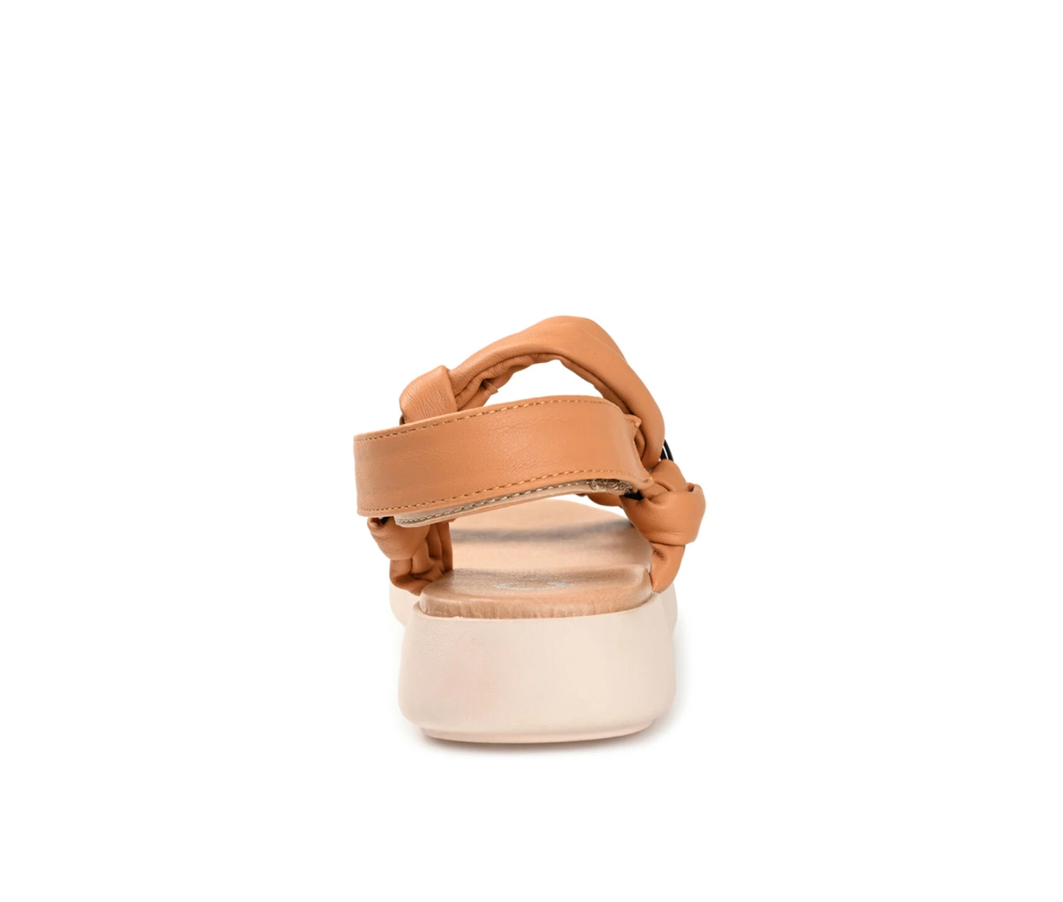 - Strut away in the Marri by Journee Collection. This casual sandal is detailed with a 4 mm Tru Comfort Foamâ„¢ footbed and a hook/loop closure that keeps you feeling good. Vegan leather uppers shape the design, and a slingback strap secures the fit.
