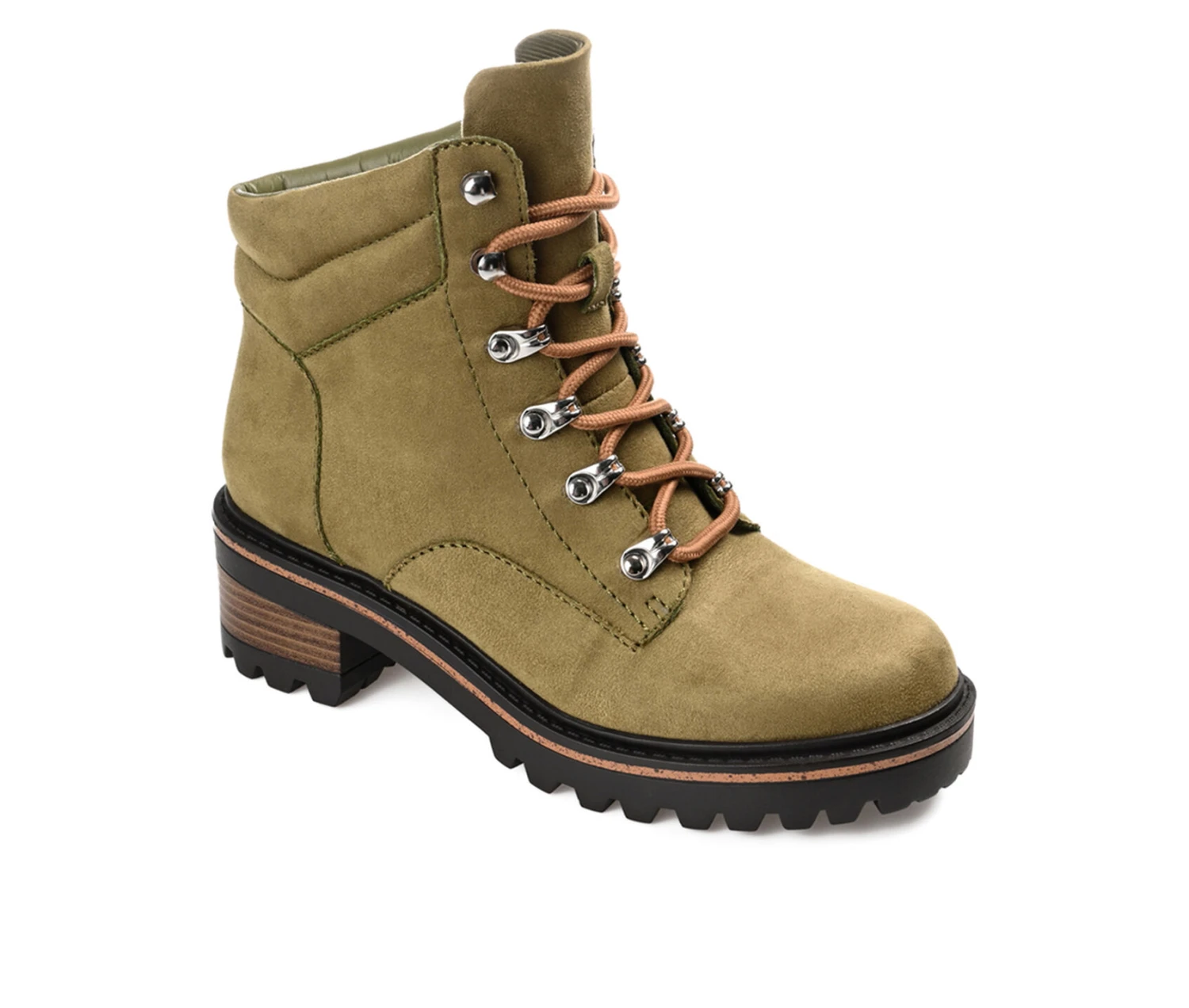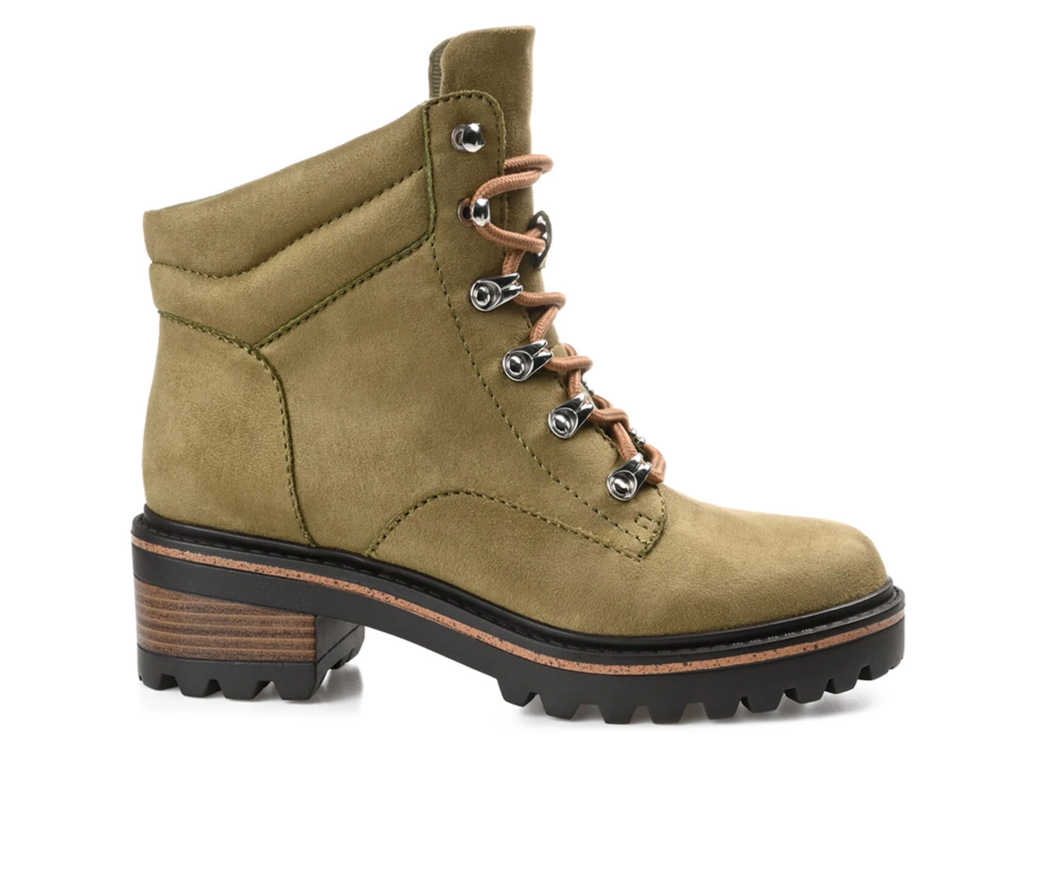 - The Nyia bootie by Journee Collection is destined to take you places. This trendy hiker-styled bootie features vegan leather with a cushioned collar and a 4 mm Tru Comfort Foam™ insole. A lace-up design with metal hardware will hold you in tightly, and a treaded outsole with a wood inset detail elevates the look.