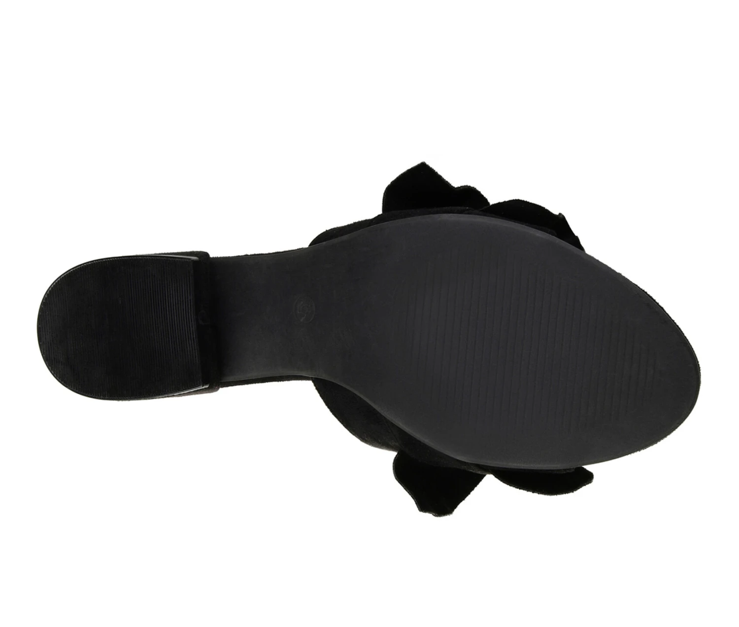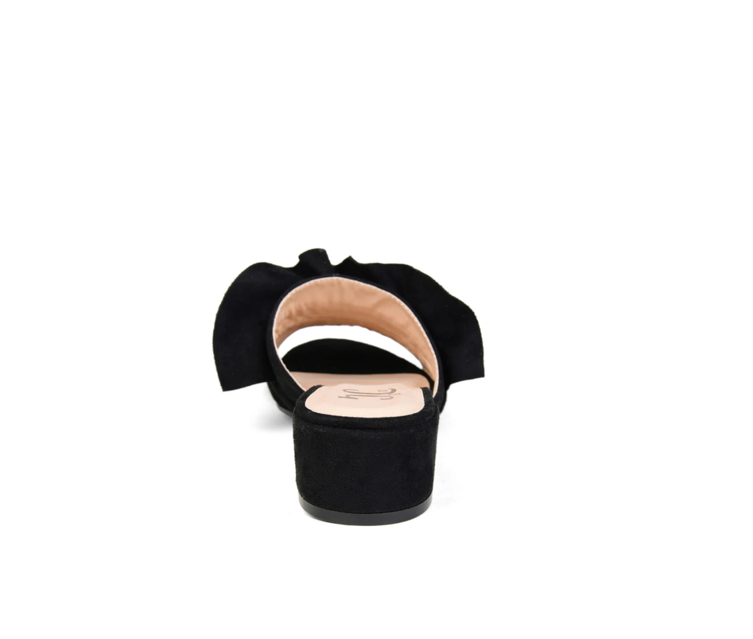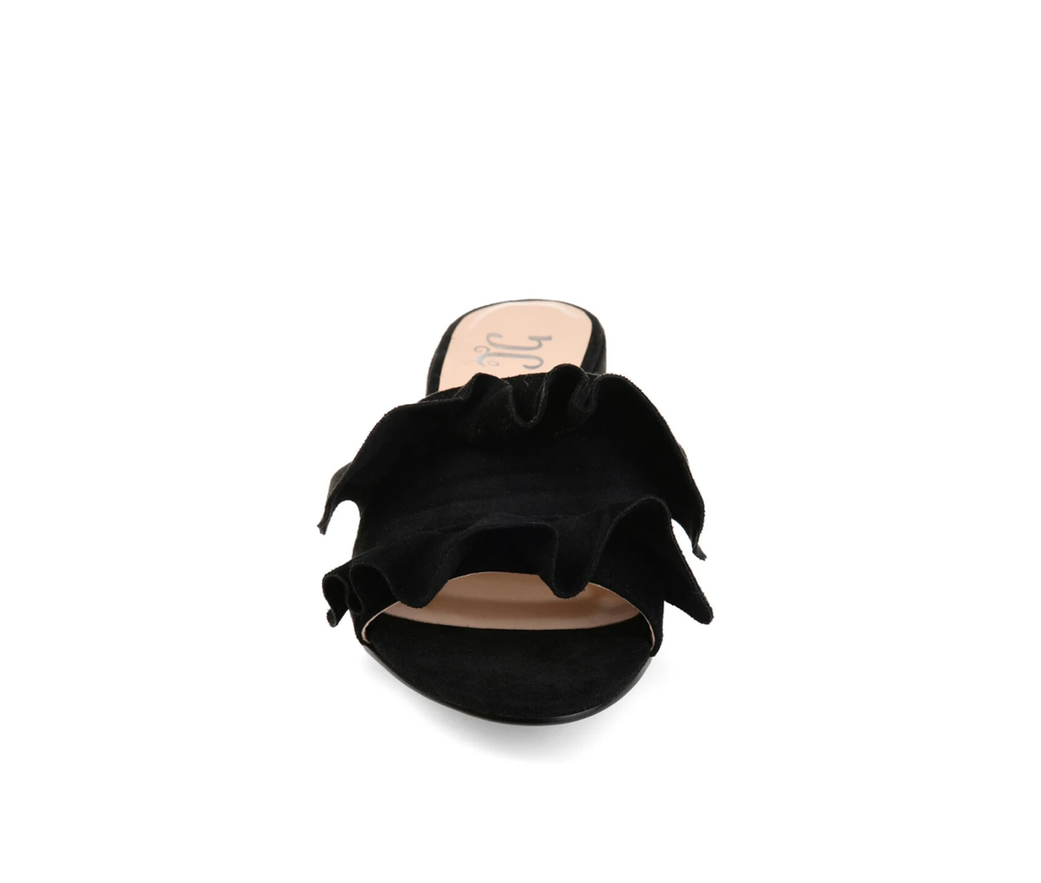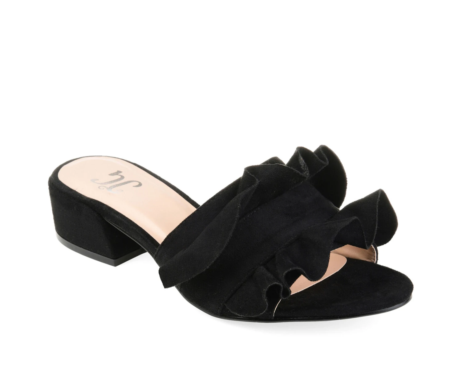 - Look effortlessly cool in ruffle slides from Journee Collection. Soft faux suede uppers display a large ruffle design across the vamps, while the chunky block heels add height, and an open-toe style completes the look.