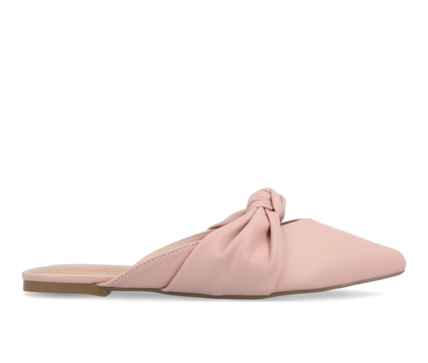 - The Salinn mule flat from Journee Collection will have you taking every step in comfort with their 4 mm Tru Comfort Foam™ insole. Their knot detail, luxe vegan leather, and pointed toe will be the perfect take on a new look to attract compliments everywhere you go. All while their slip-on closure makes them an easy grab-and-go shoe to rush out the door.