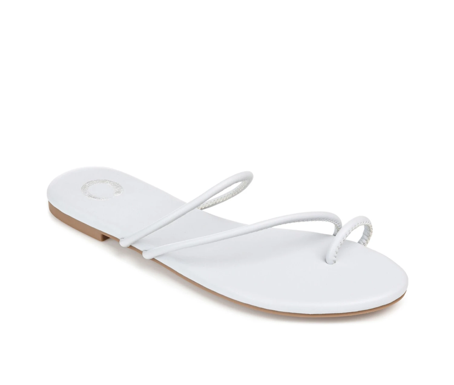 - Keep it simple with the Tanaya by Journee Collection. A chic loop at the toe and slim tube straps create a foot framing fit. A padded insole and soft luxe vegan leather complete this slip-on design.