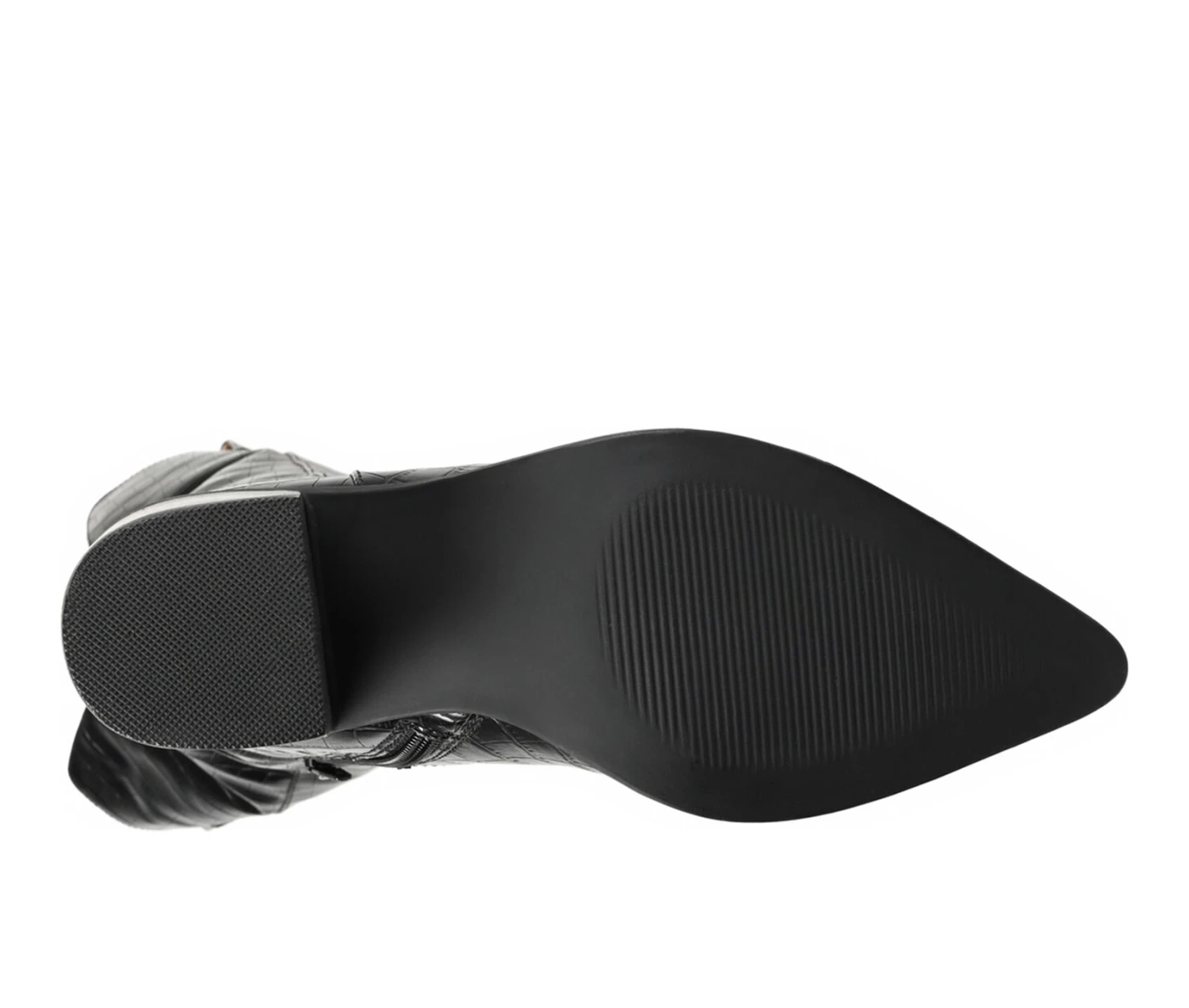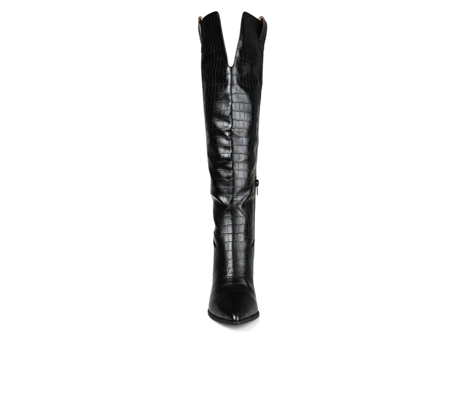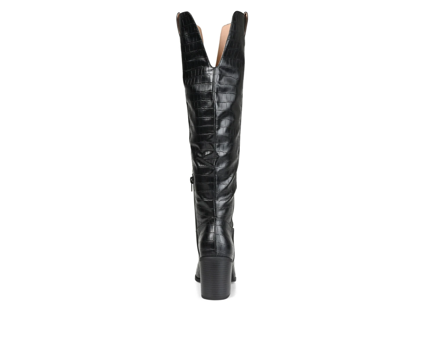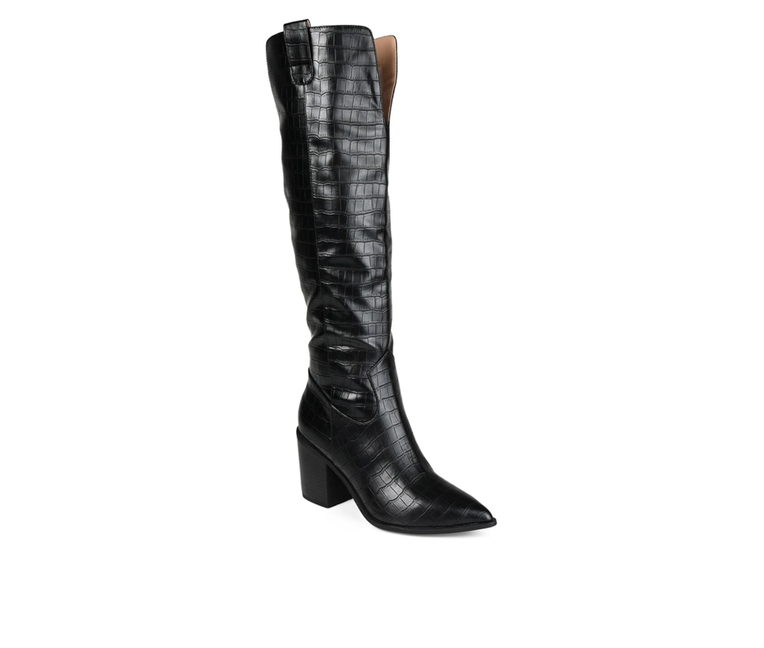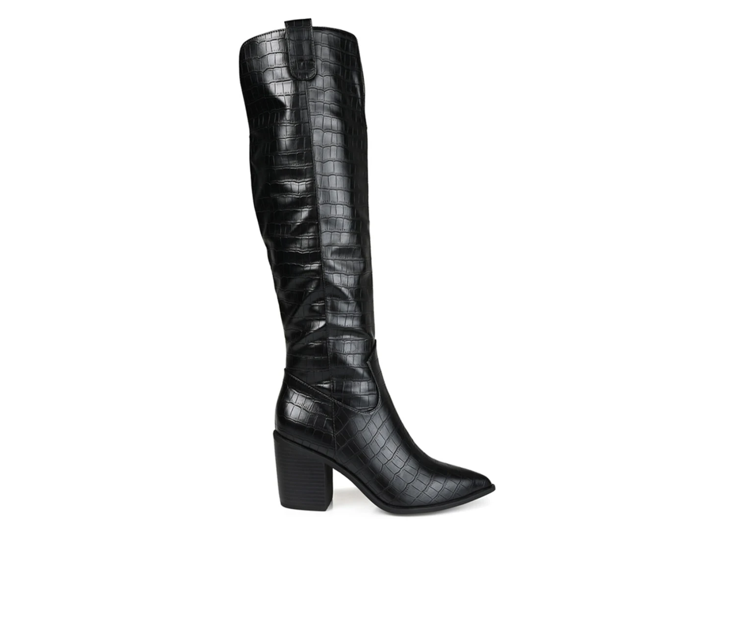 - Do you prefer the city or the country? Well, why not embrace both sides with the Therese boot by Journee Collection! A stacked block heel and croc textured vegan leather detail this knee-high boot for a sassy look. This rodeo-inspired design features a wide-calf features a 4 mm Tru Comfort Foamâ„¢ insole for supportive and comfortable wear.
