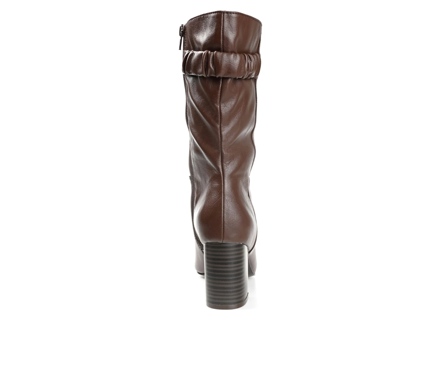 - In the Wilo boots by Journee Collection, you simply can’t go wrong! These wide-calf boots feature an inside zipper entry and soft vegan leather with a ruched strap detail. The 4 mm Tru Comfort Foamâ„¢ insoles make them comfortable to wear and stacked block heels provide an attractive lift.