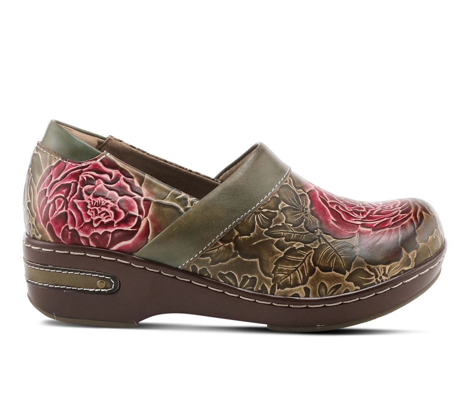 - Premium hand selected embossed leathers featuring hand painted rose design in soft but striking contrast colors. Inside stretch “V” gore for easy slip-on convenience and so much soft interior padding you’ll forget you’re wearing shoes!
