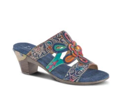French inspired, hand painted platform heels are a show stopper for this spring summer season. These asymmetrical 3D flowers and embossed patterns on the outsole and heel give a flare. Slip on this shoe with ease and leave out the door with our hook and loop strap.