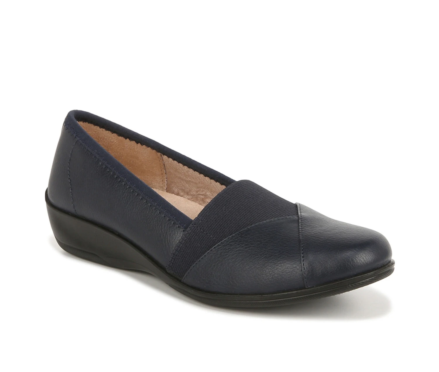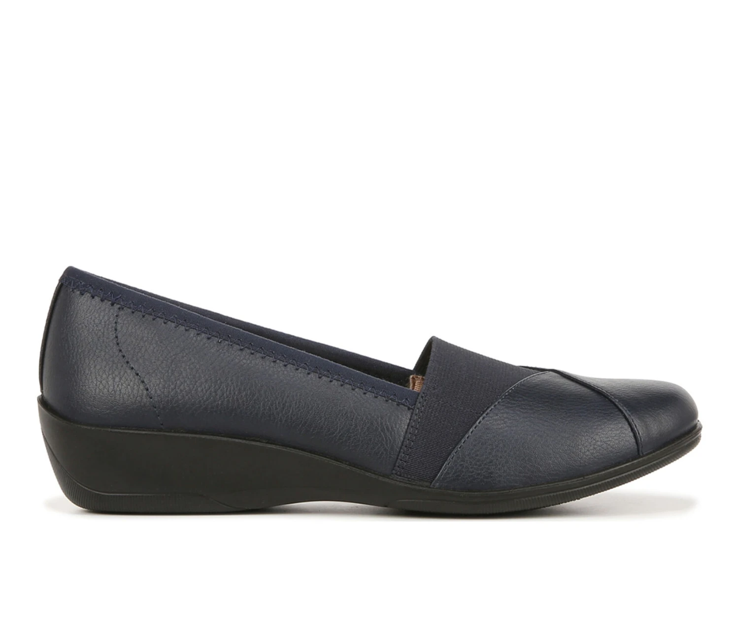 - Start and end your day in comfort with these essential womens slip on shoes. Faux leather upper with a round toe, slip-on fit, stretch fabric for easy on/off, and lightweight and flexible design. Toe box, heel counter, and linings partially crafted with recycled materials. Soft System® comfort package provides all-day support, flex, and cushioning. Get next-level comfort with Velocity 2.0®, featuring luxe linings, superior cushioning, and a premium insole with shock absorption & pressure distribution. Traction sole provides you with extra stability. Just Right Height 1.75 inch sole.