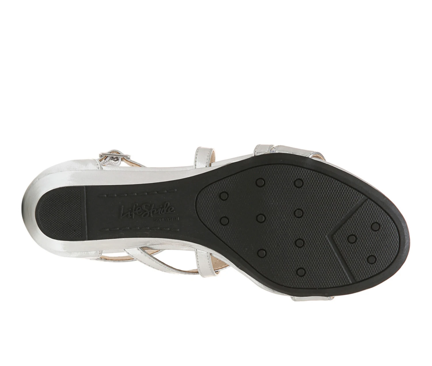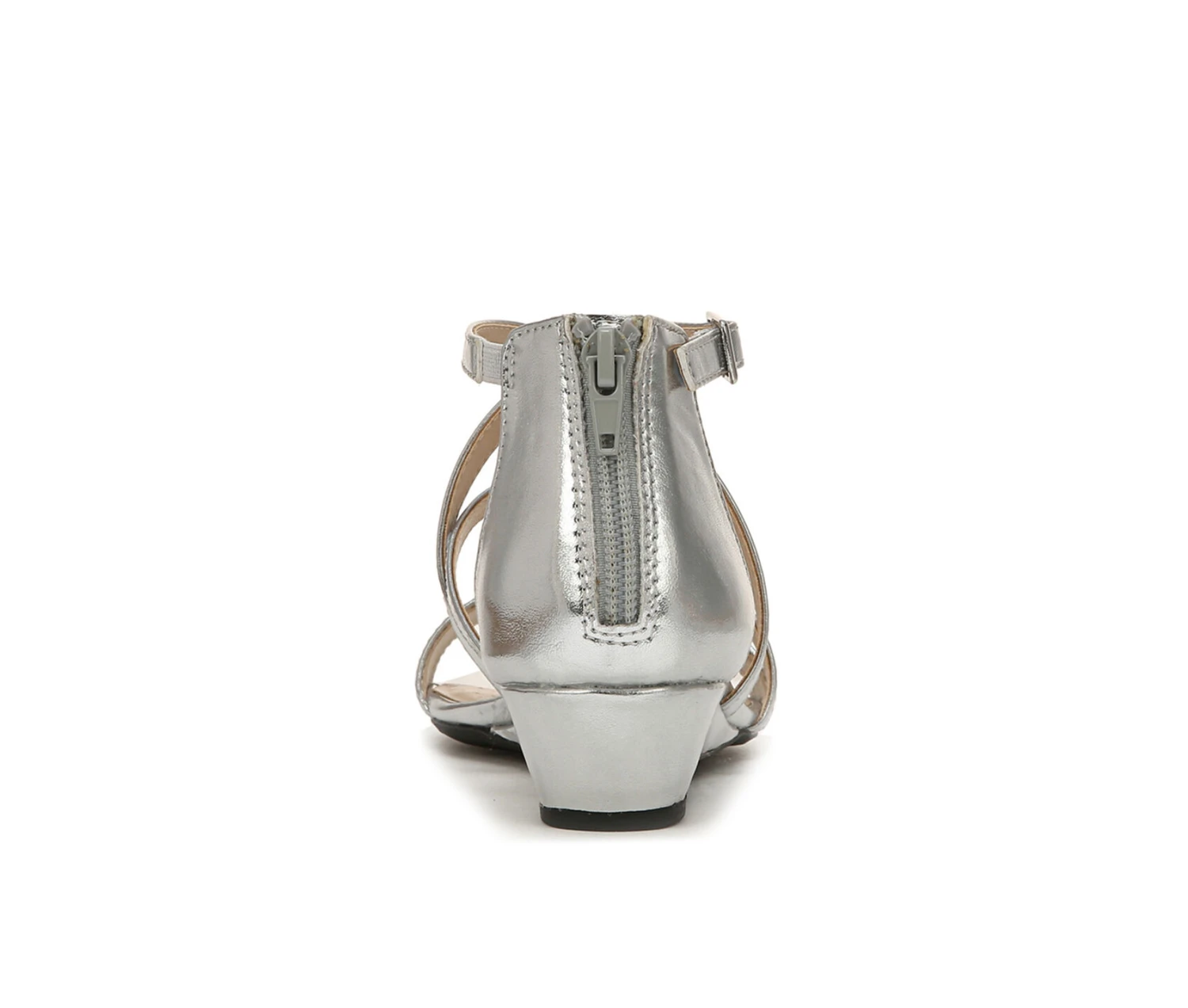 - Feel the sophistication in these effortlessly comfortable and strappy dress sandals for women. Faux leather with an open round toe, back zip for easy on/off, adjustable ankle buckle with stretch for a custom fit, and strappy design with built-in stretch. Linings and heel counter partially crafted with recycled materials. Soft System® comfort package provides all-day support, flex, and cushioning. Traction sole provides you with extra stability. Just Right Height 1.25 inch wedge heel.