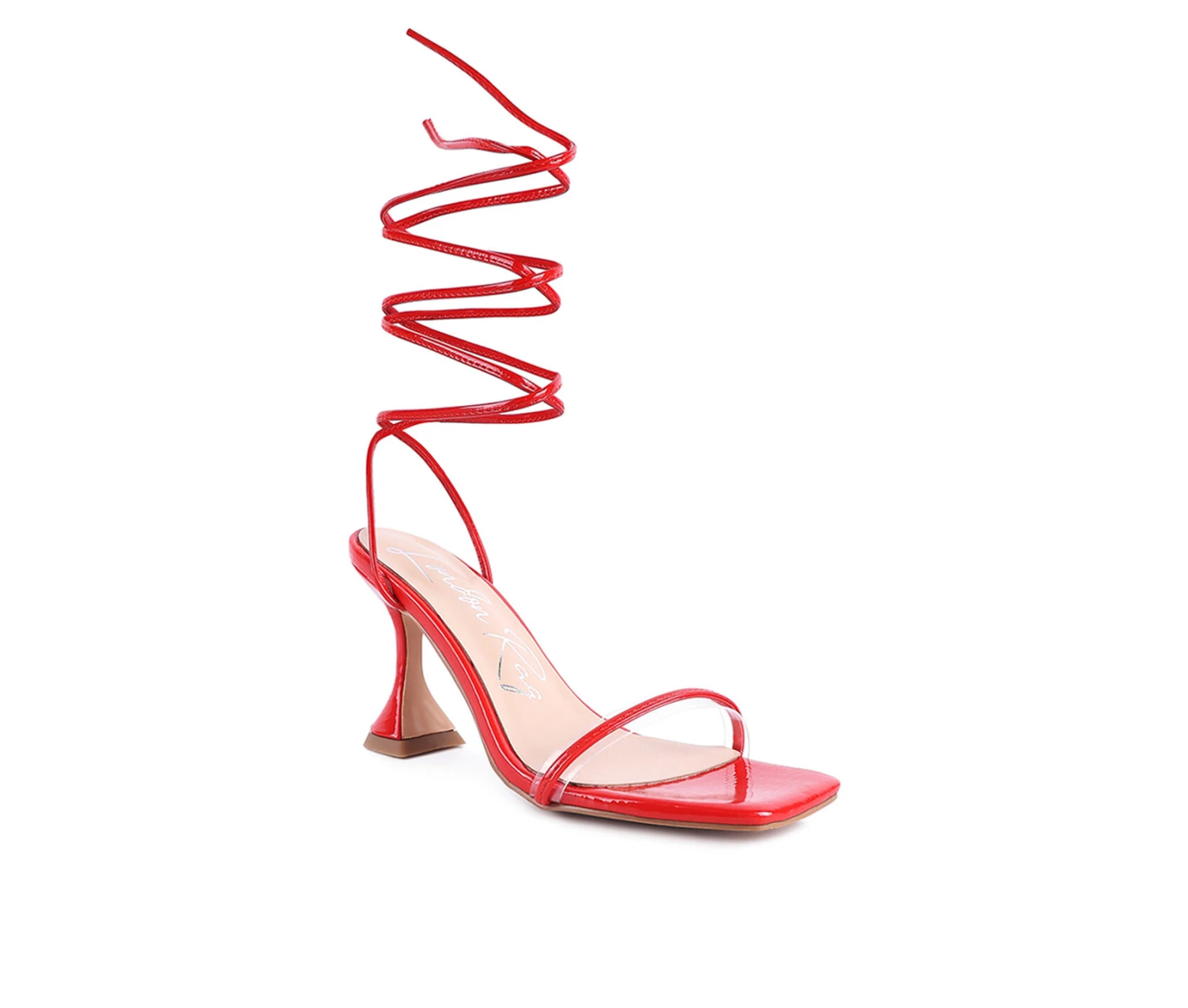 - With croc shiny patent PU, this lace-up sandal with medium height looks all chic and practical. Has cushioned insole which cuts stress, looks glam on feet, and compliments all summer dresses!