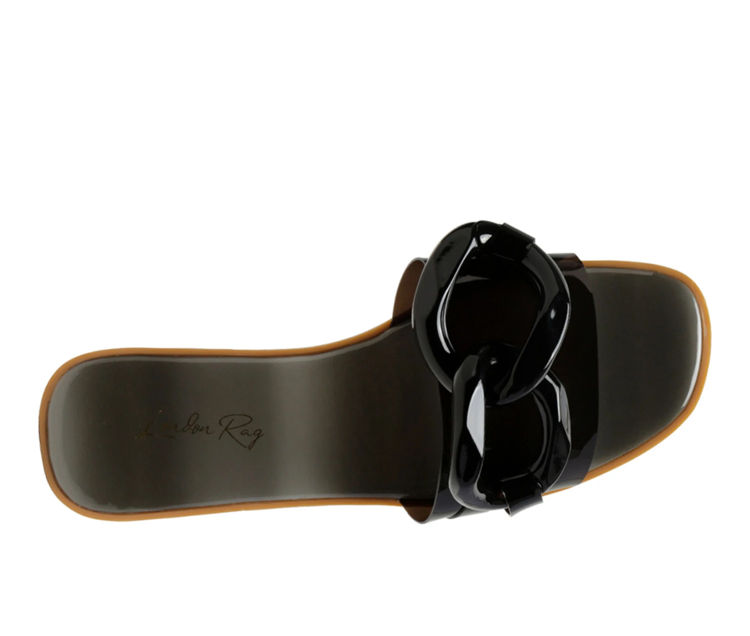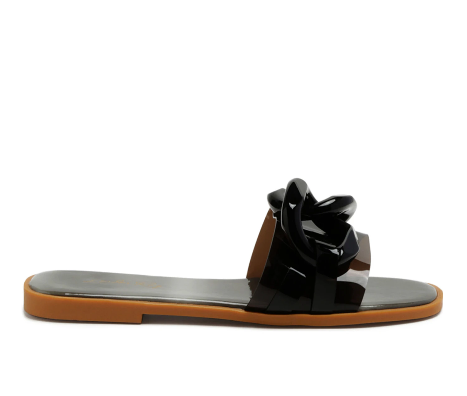 - Chain Detail Clear Strap Flats in Square Toe. Adds look to feet, casual all day slides.