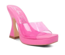 - The slip-on sandals is elegant with beautiful diamante detail knotted strap in front and clear spool heels. It has a clear broad strap that supports the decorative diamante knotted strap. The sandals are perfect for a cocktail party or fancy occasion!