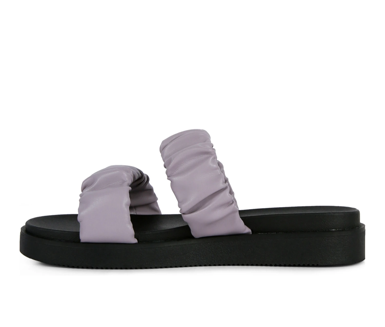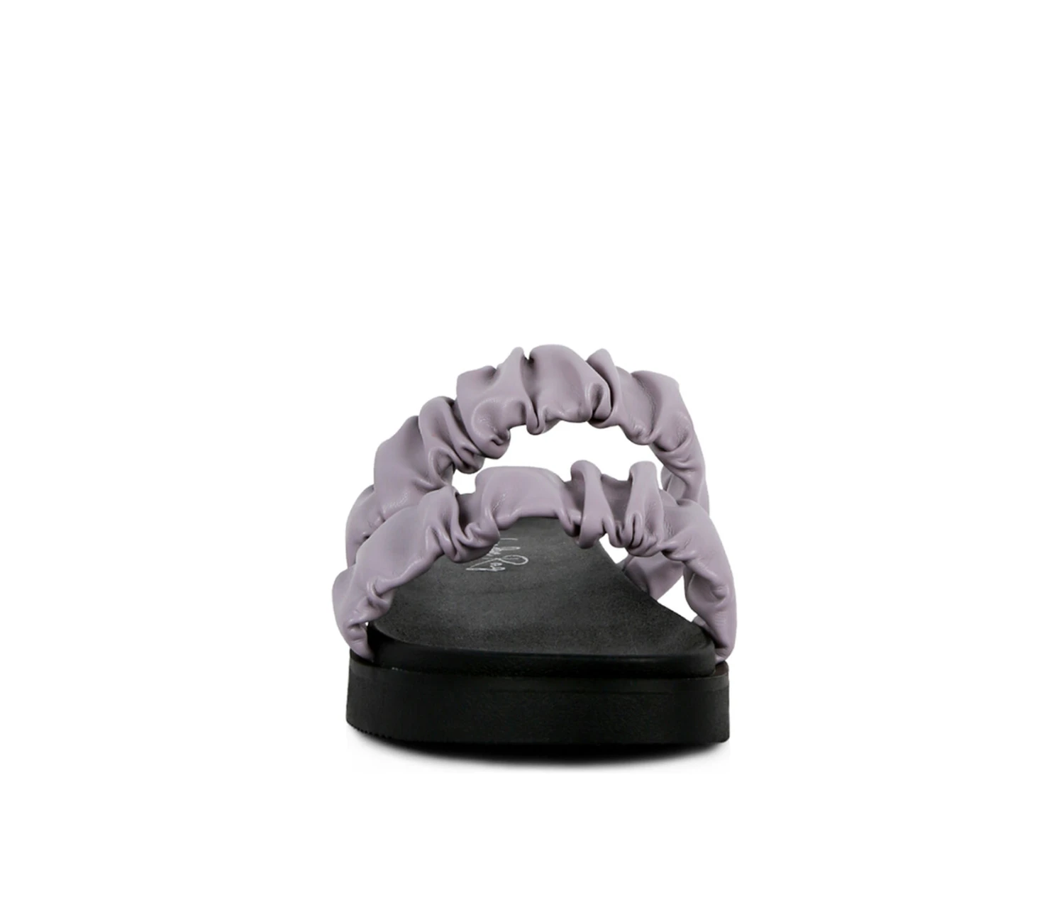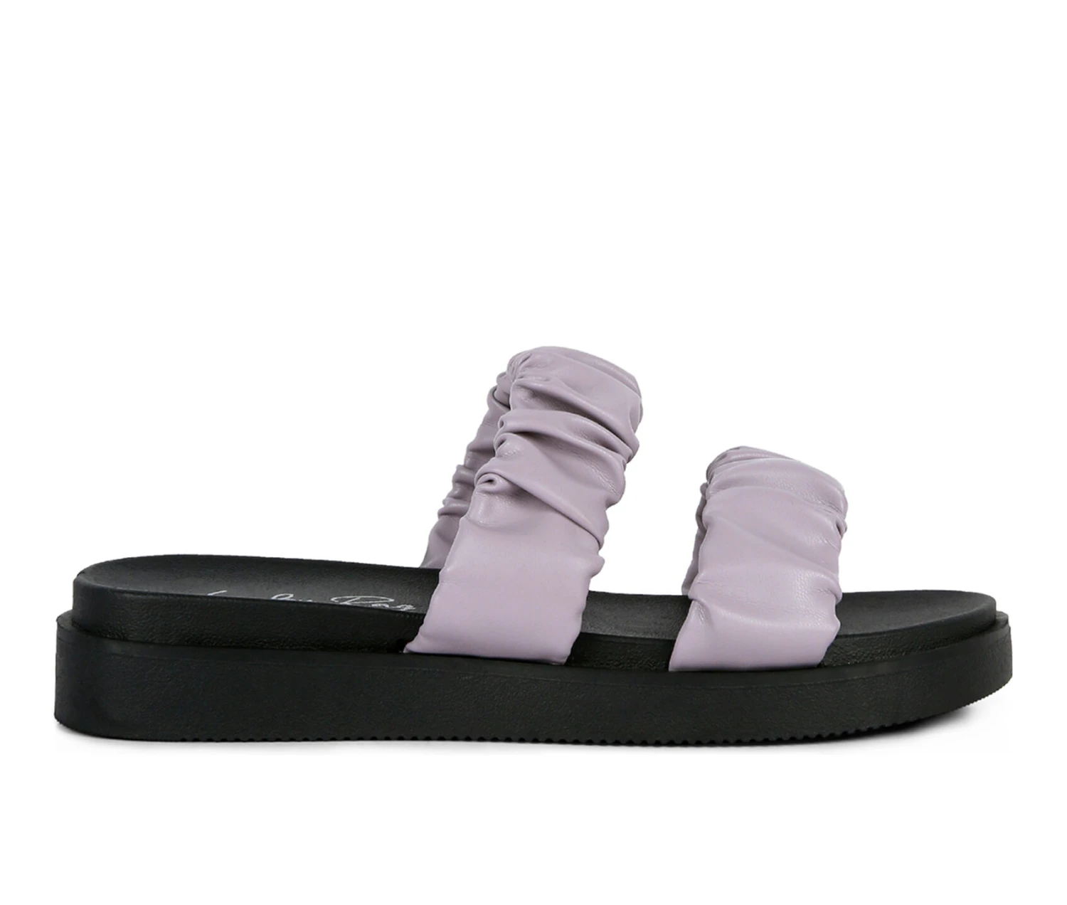 - Soft and comfy – this pair of ruched strap slider sandals in the platform is a perfect leisure shoe. Comes with a padded insole and anti-slip rubber outsole.