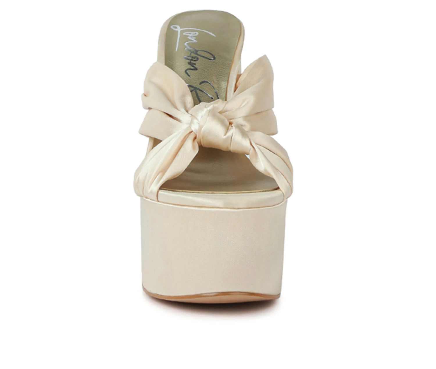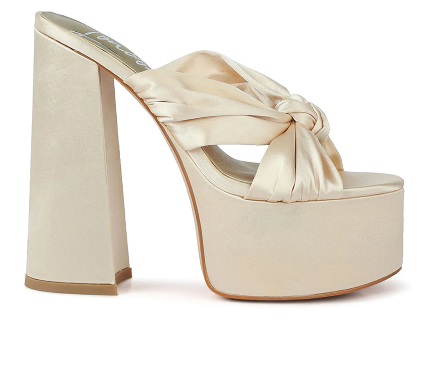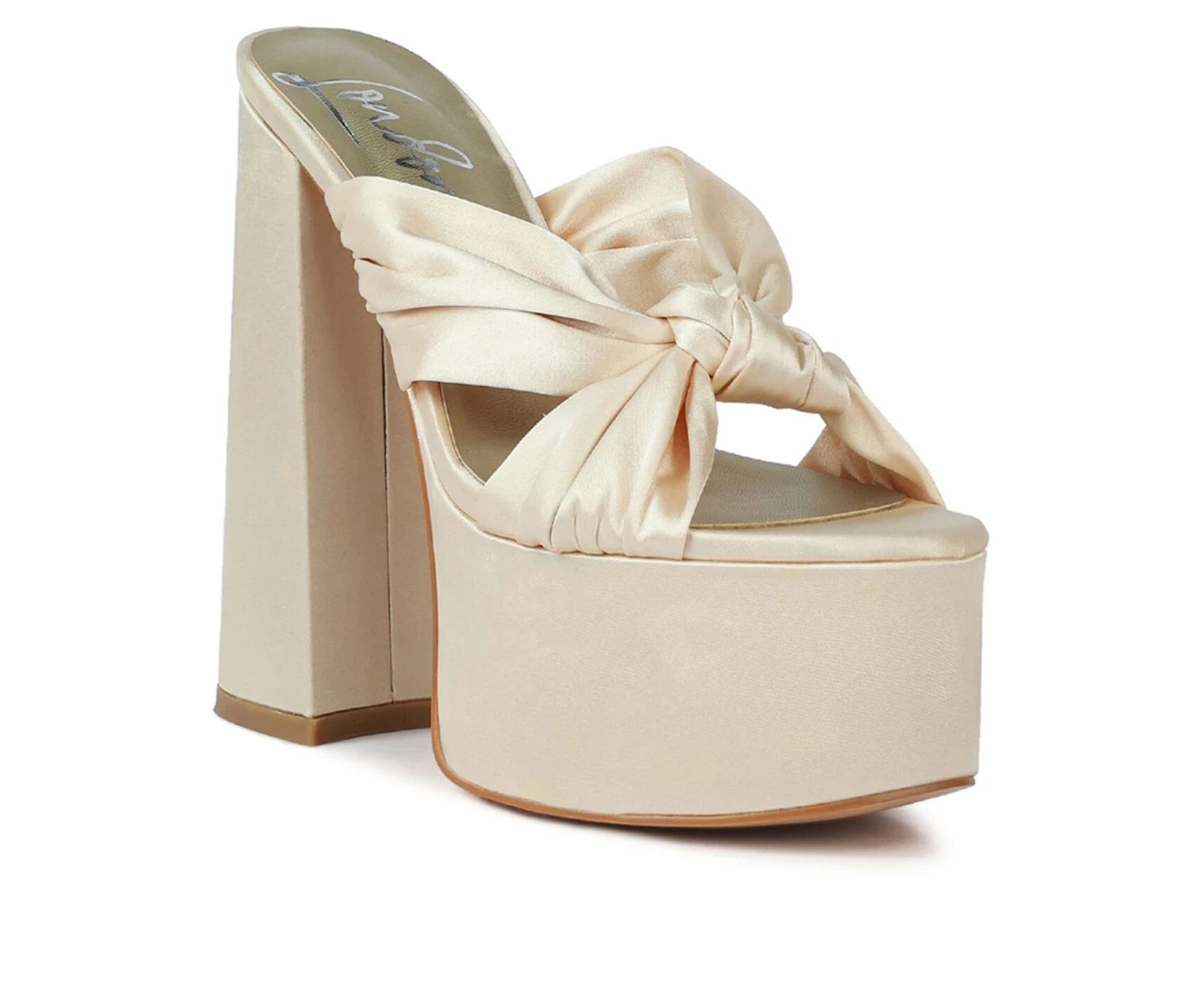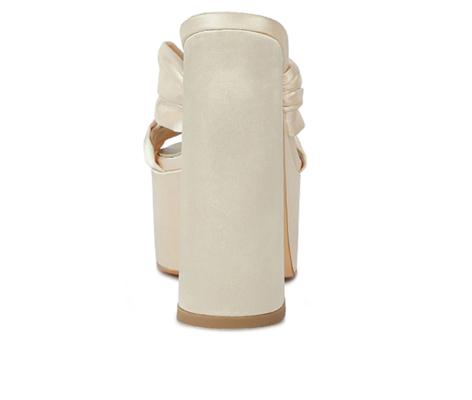 - The satin knot detail front is elegant and beautiful. The chunky platform high heels give the slip-on sandals some depth which is interesting. The sandals are versatile and can be worn to any occasion.