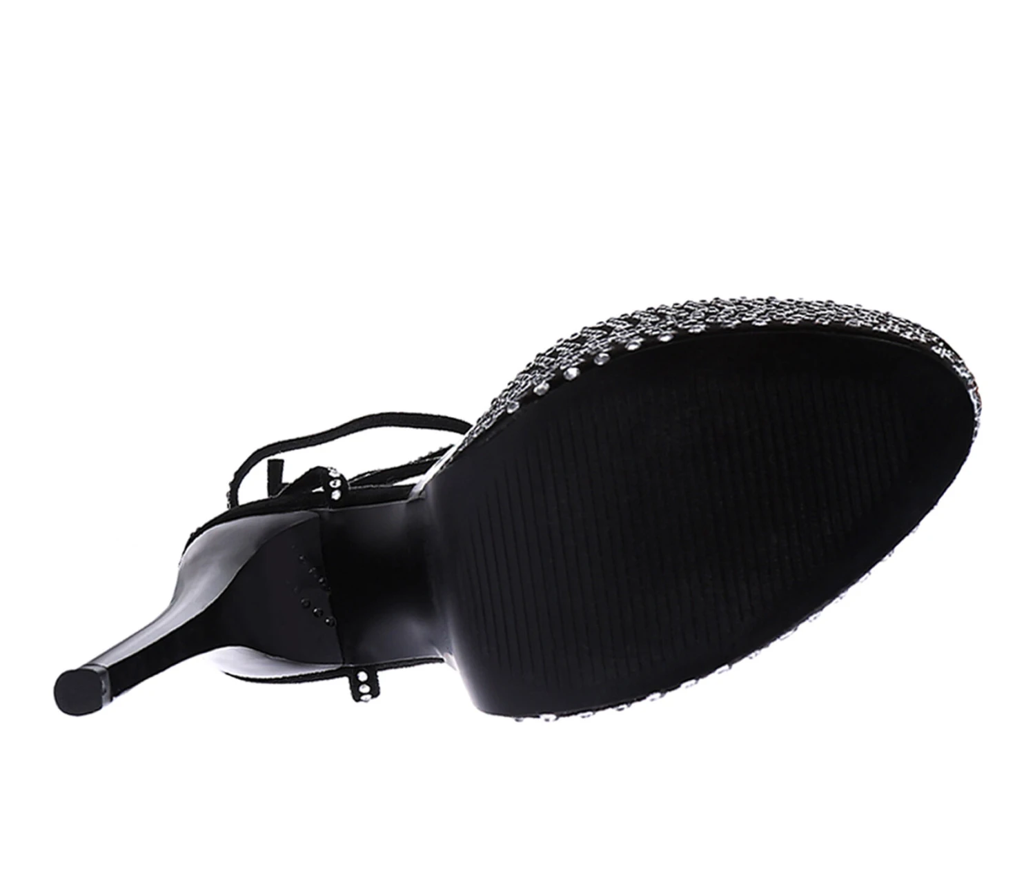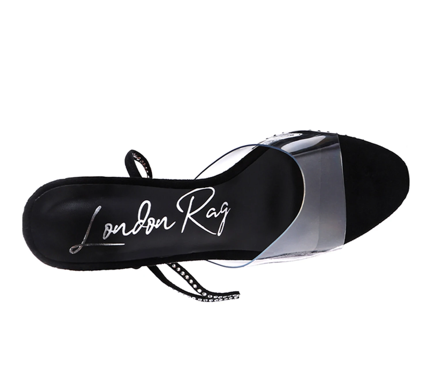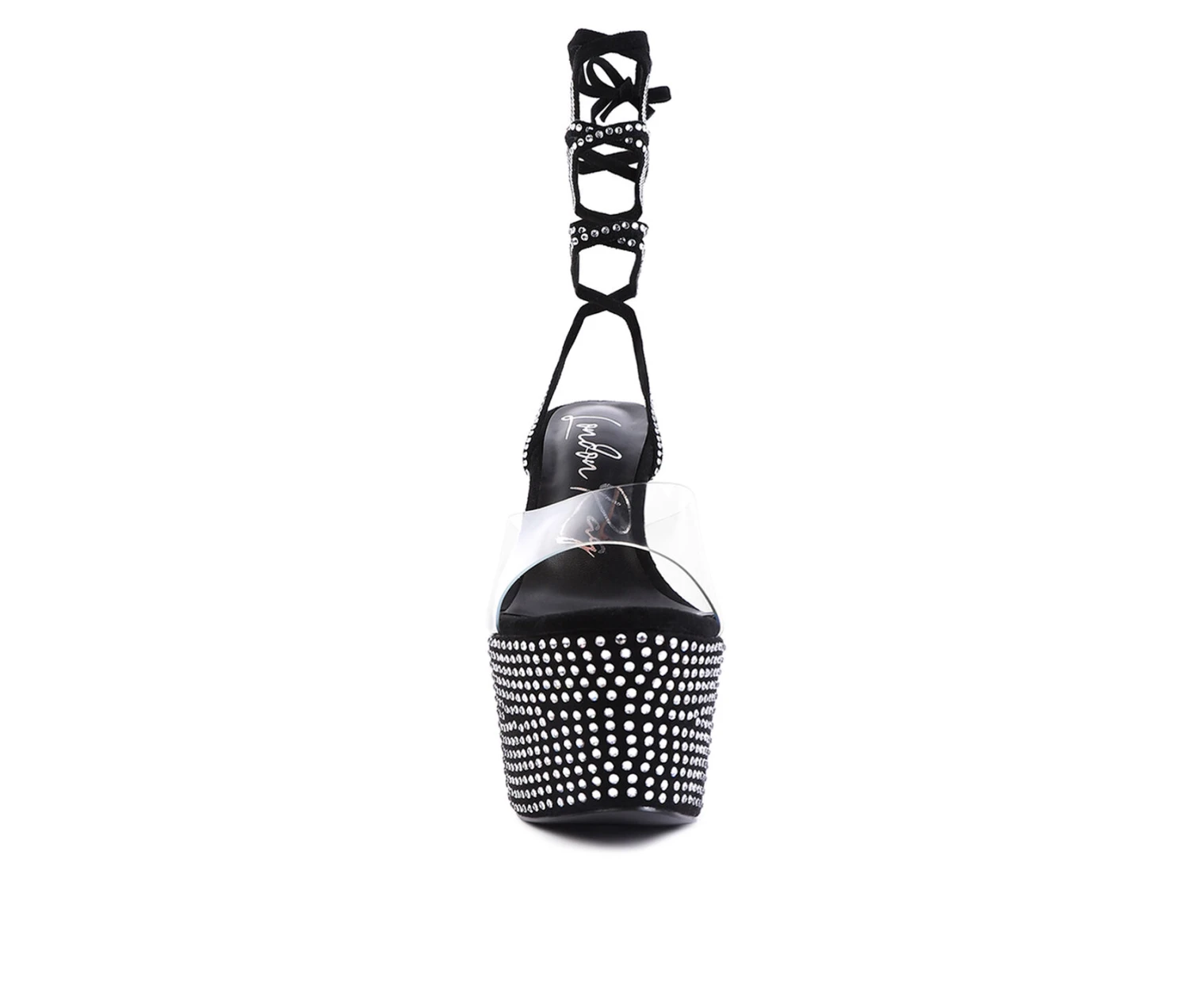 - Centre of attraction guaranteed in these stunning and racy platform heels. The strappy detail is sexy, while the diamante adorning the strap and the wedge is alluring. The strap is clear and hence the focus is completely on the heels. Â