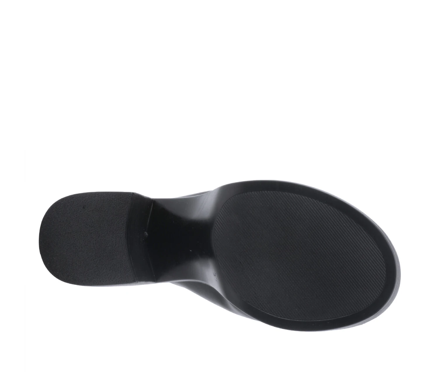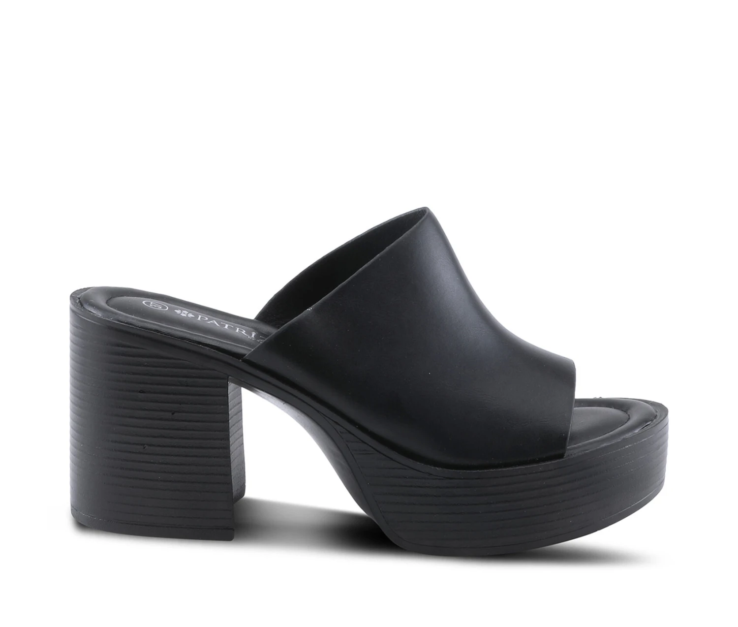 - Approx. 3″ stacked faux wood block heel / platform