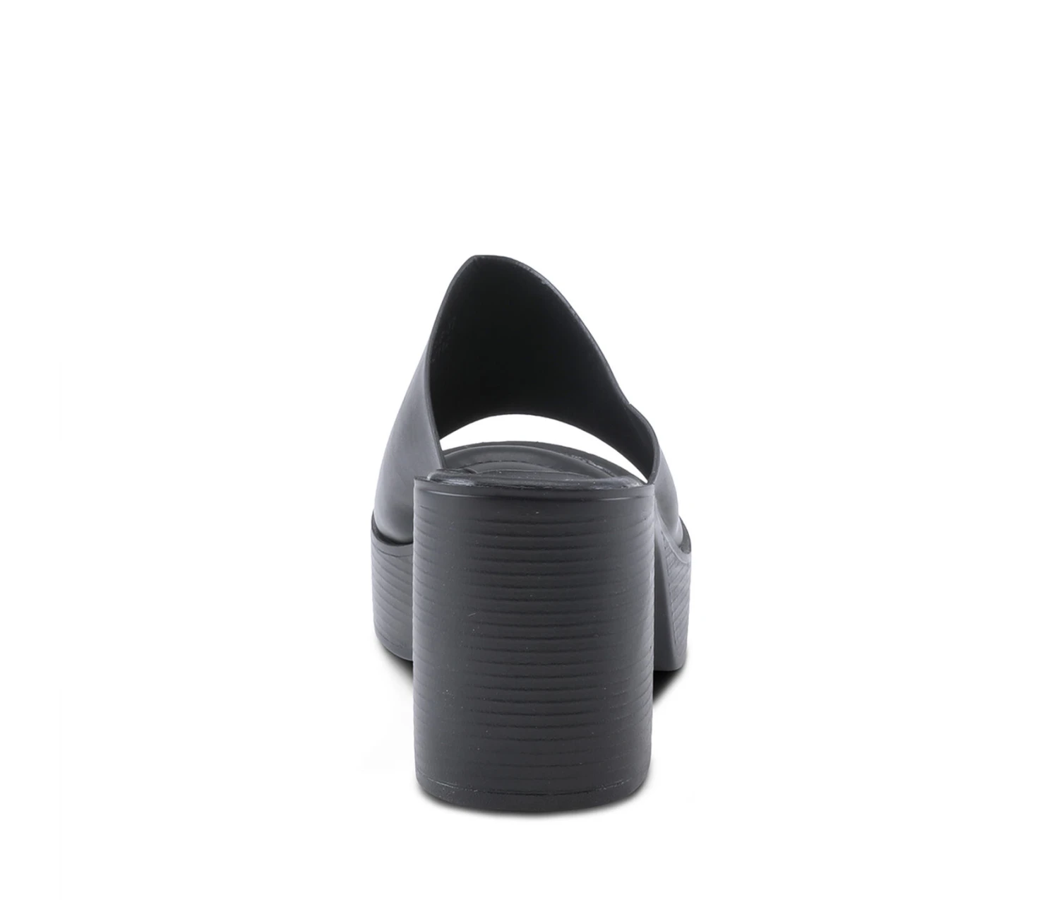 - Slip into this open toe mule elevated by a chunky faux stacked heel and platform.