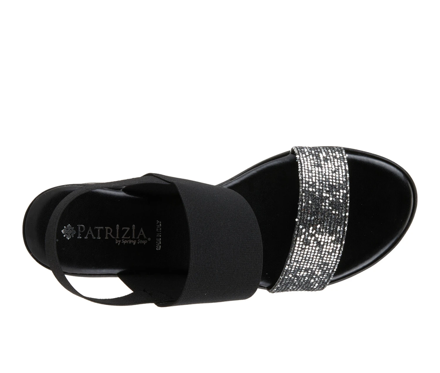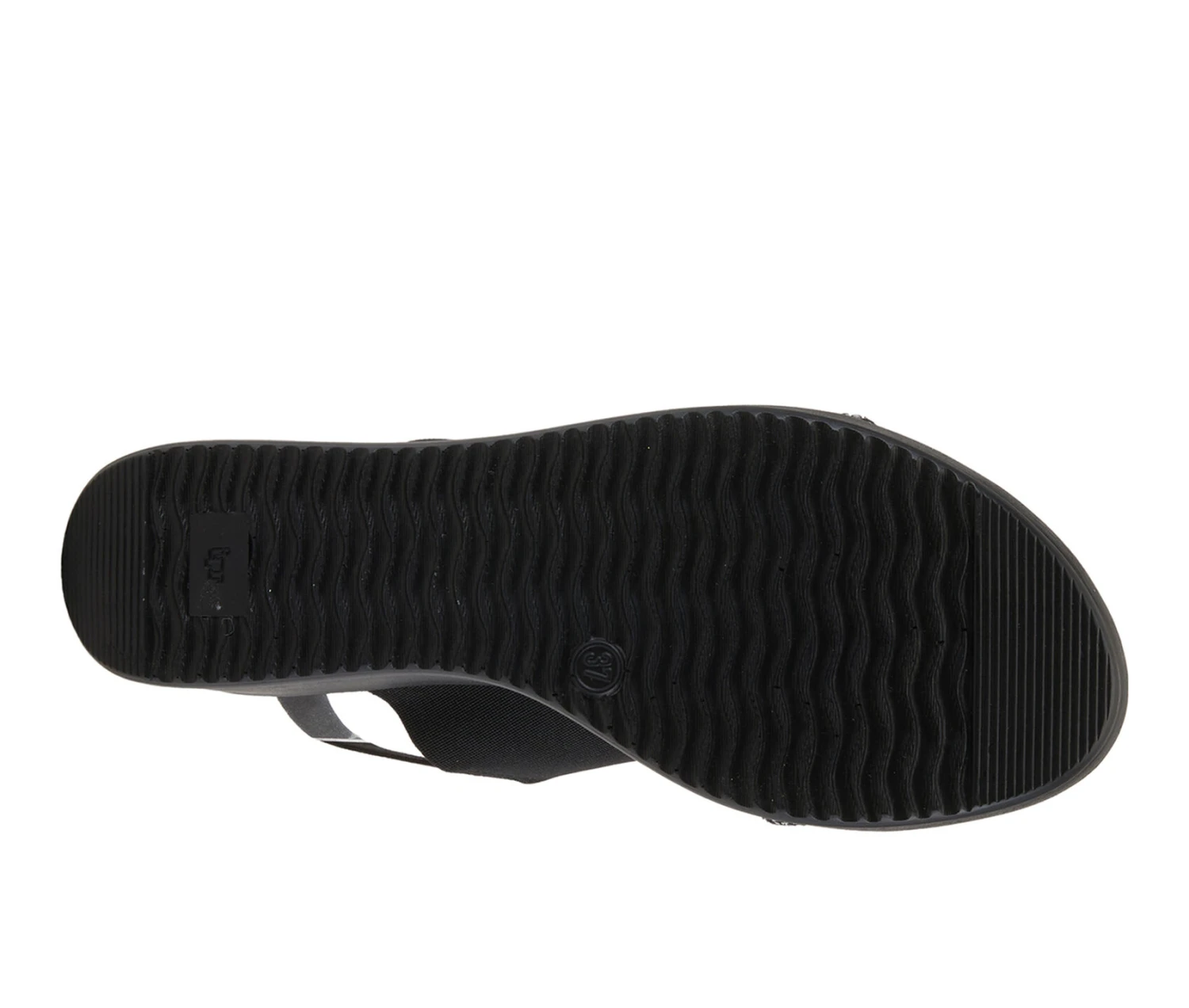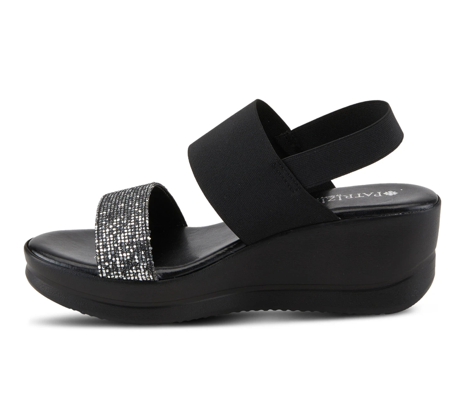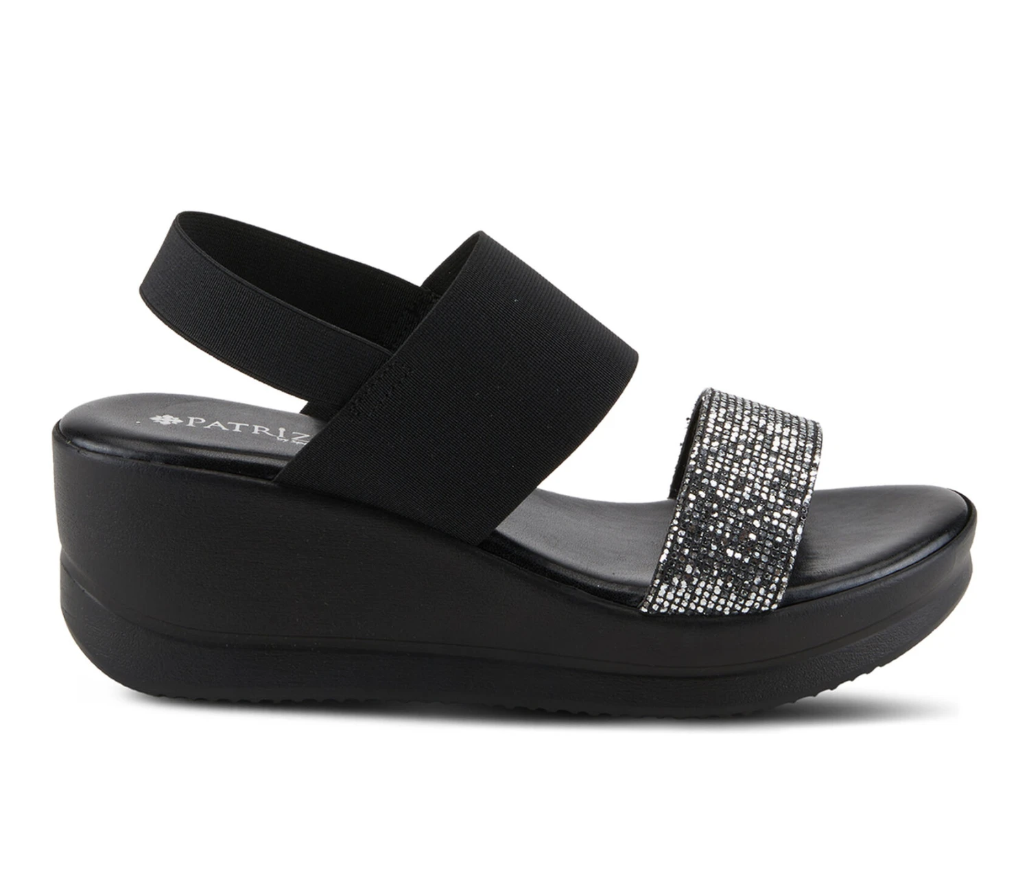 - Comfy cute sandal wedge with an elastic back strap for extra support and adjustability; a sparkly front strap for extra glitz on a supportive, squishy insole.