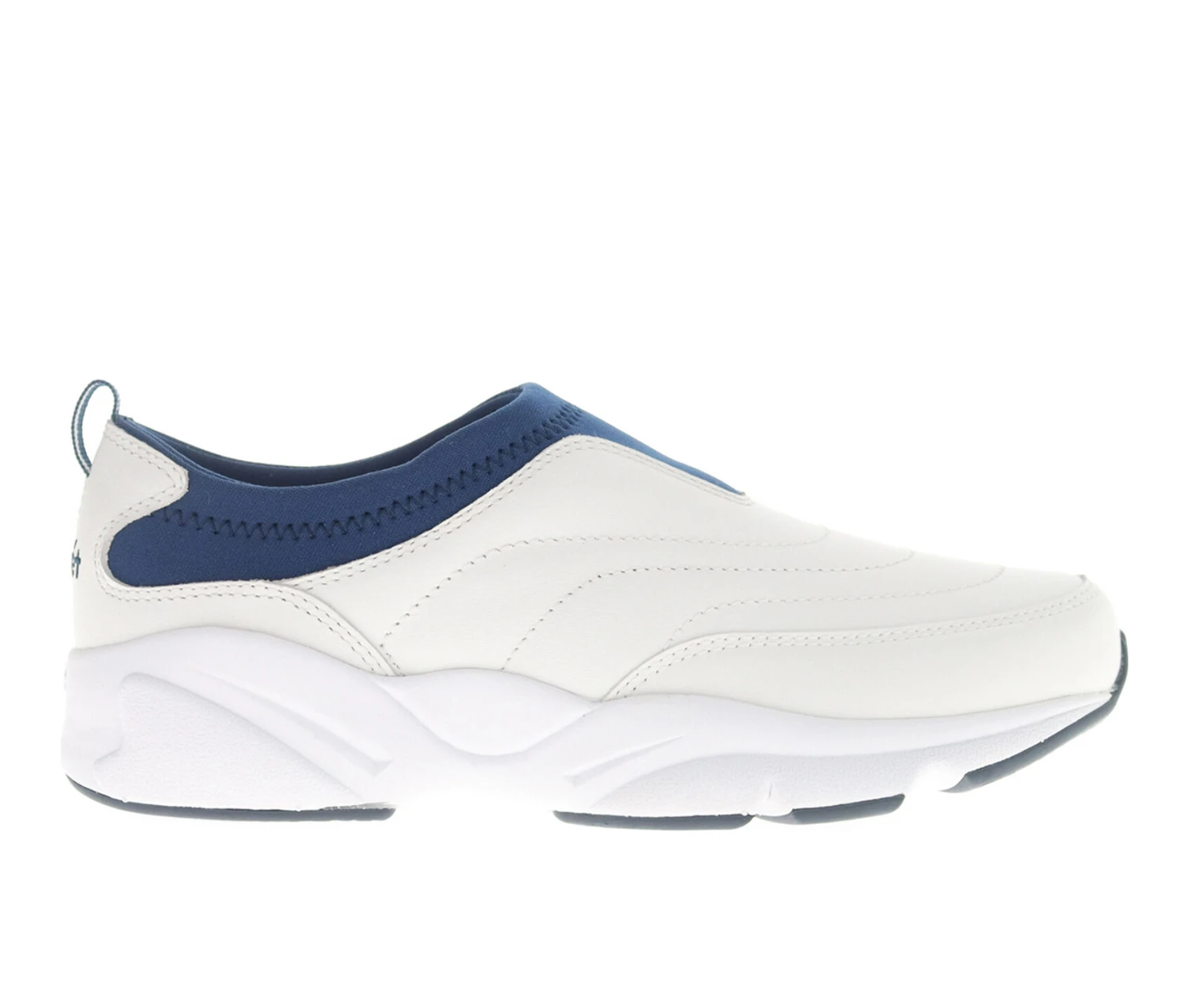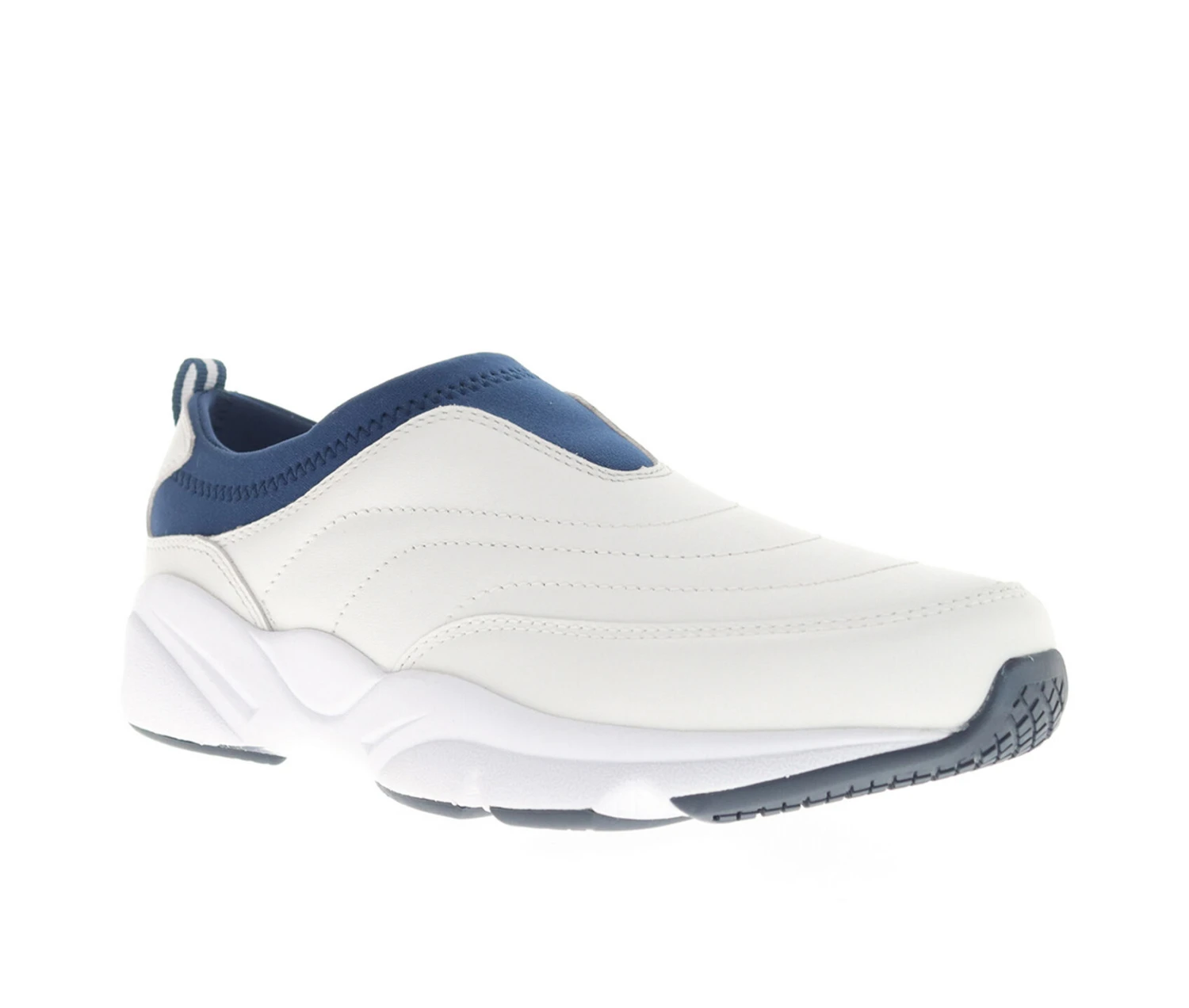 - Leather or Nubuck slip on with center gore and a roomy toe box providing toes space to spread out improving stability. Soft cushioning PU for even wear with comfort ridges in forefoot and memory foam topper. Supportive EVA midsole with rubber outsole for a long lasting smooth stride. Slip Resistant, Scotchgardâ„¢ stain and water resistant treatment.