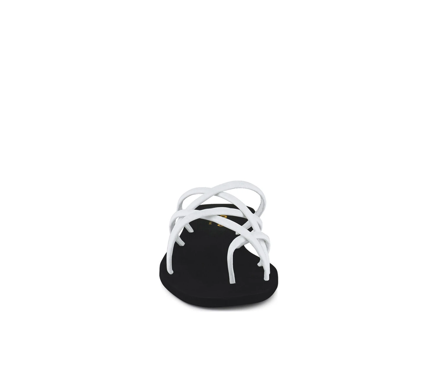 - We all love good comfortable and chic go-to pairs of sandals. The strappy leather sandals are great on-the-go footwear with the comfortable sturdy insole and flat heel construction. The criss-cross straps on the vamp give them an edgy look.