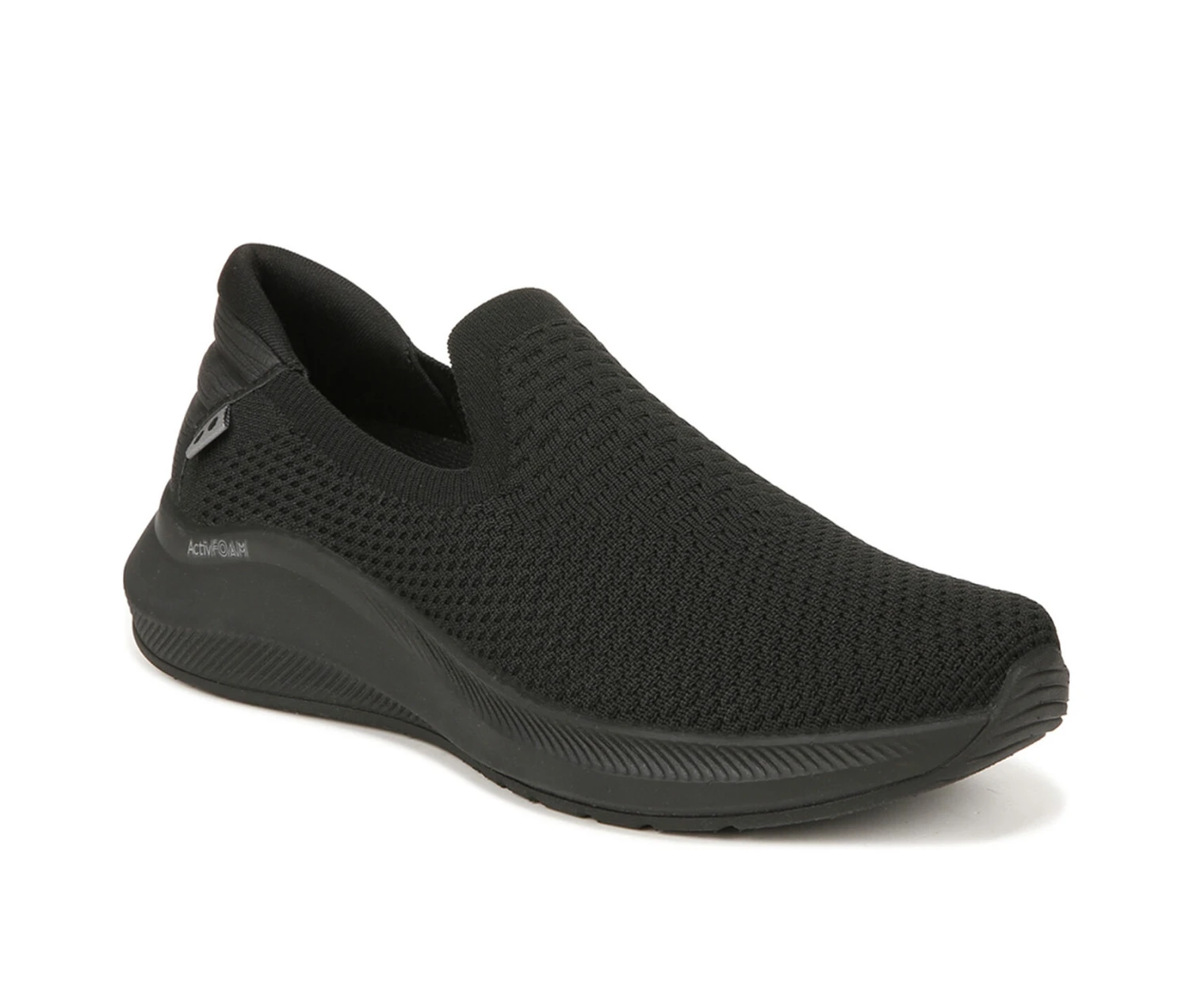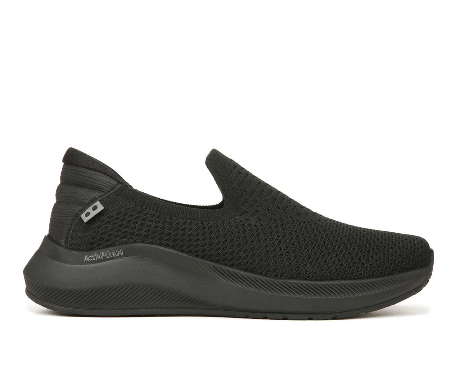 - Slip them on, feel the stretch, and go in these womens slip on shoes. BEST FOR: Casual walking + everyday wear. PERFORMANCE TECH: Exceptional cushioning throughout for standout comfort. MADE FOR WOMEN FIT: Designed for a woman’s unique foot shape, muscle movement, and build with a narrower heel, roomier toe, and contoured flexible cushioning. MATERIALS: Engineered knit with a stretch topline and padded heel collar. CLOSURE: Slip-on fit for easy on/off. INSOLE: Anatomical insole with extra arch + heel support. MIDSOLE: ACTIVfoam™ EVA for soft cushioning. OUTSOLE: Durable and lightweight high-density EVA outsole. WEIGHT: 170 g/6.0 oz per shoe. HEEL-TO-TOE DROP: 14.5 mm.