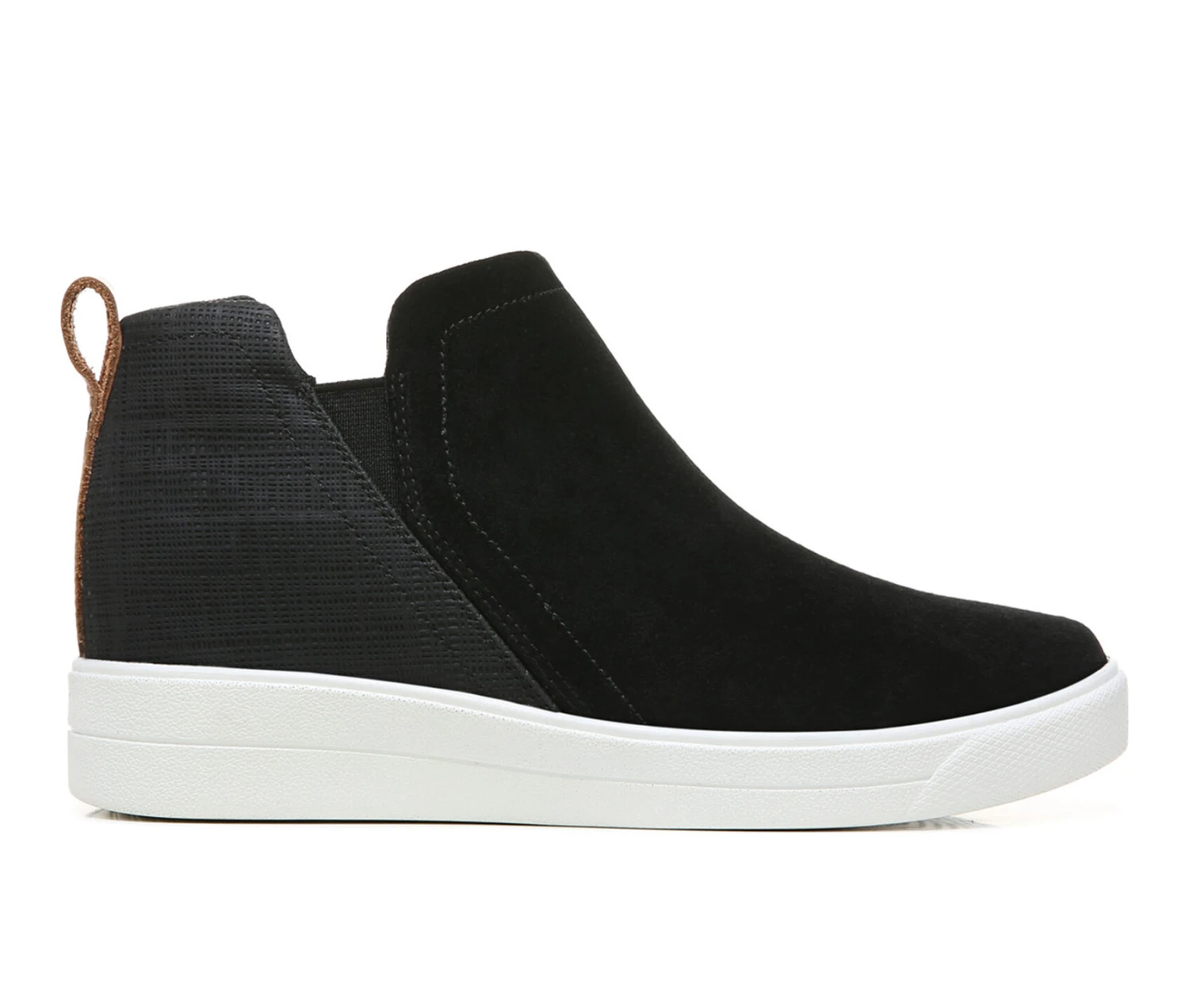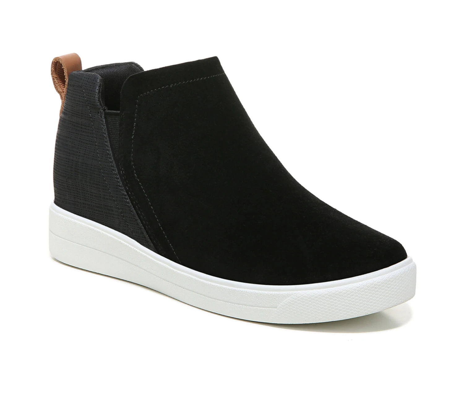 - This sleek and sporty sneaker bootie is an everyday essential. Breathable knit with elastic gore panels and padded ankle. Slip-on fit with back pull tab for easy on/off. Surround Fit insole with cushioned EVA heel cup surrounds your foot in comfort. Lightweight molded internal wedge for added heel height. Flexible, durable outsole. Go up 1/2 size for optimal fit.