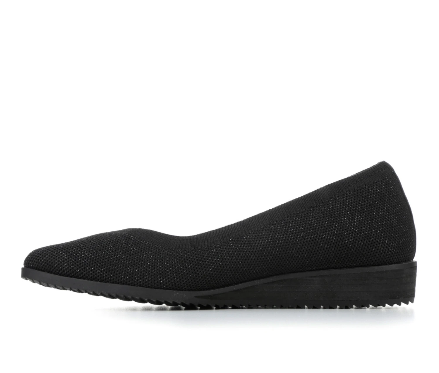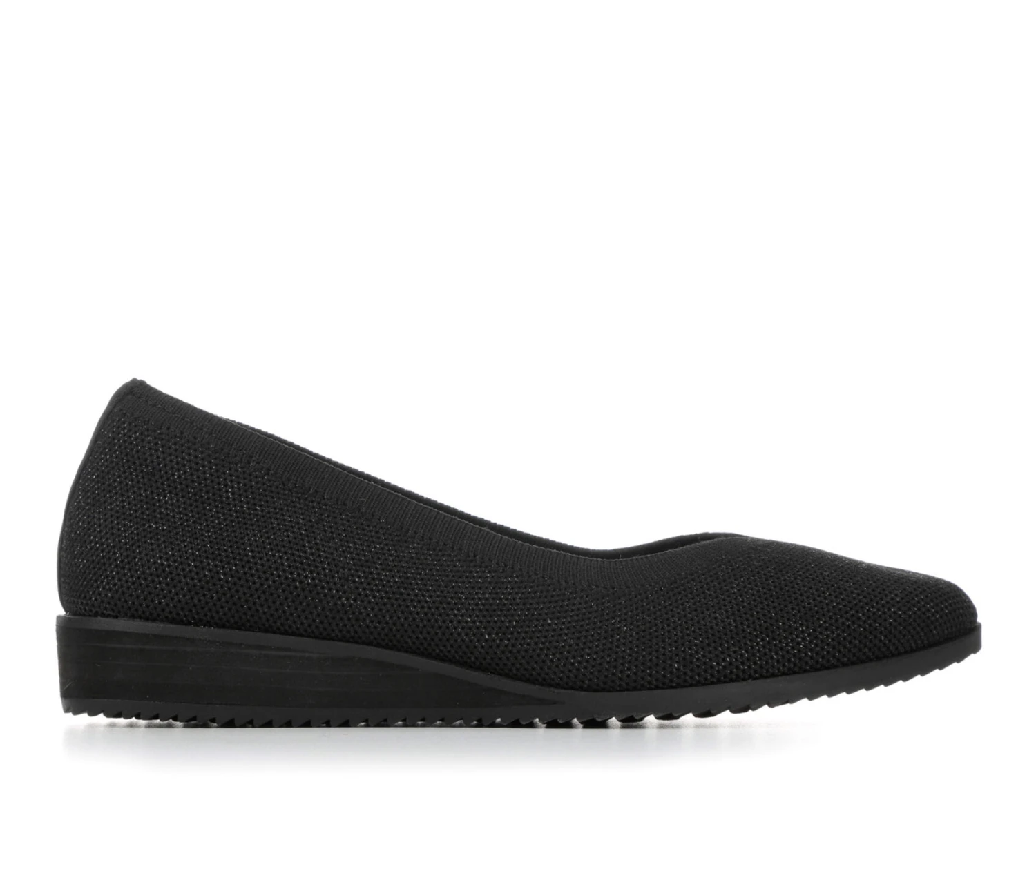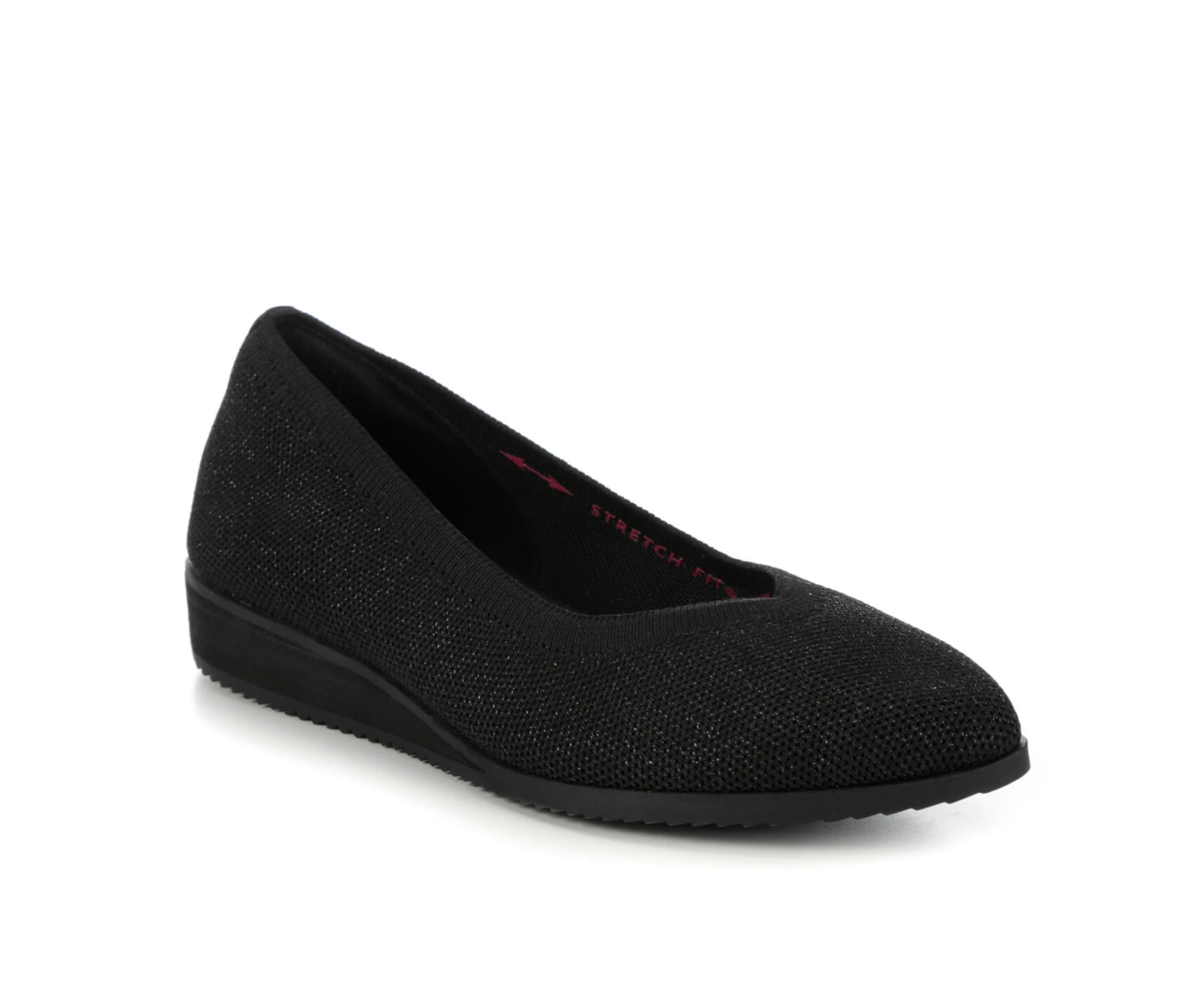 - Versatile style mixes with stretchable soft comfort in Skechers Cleo® Sawdust. This skimmer loafer features a Stretch Fit® textured linen fabric upper with a cushioned Skechers Air-Cooled Memory Foam® insole and a low wedge heel.
