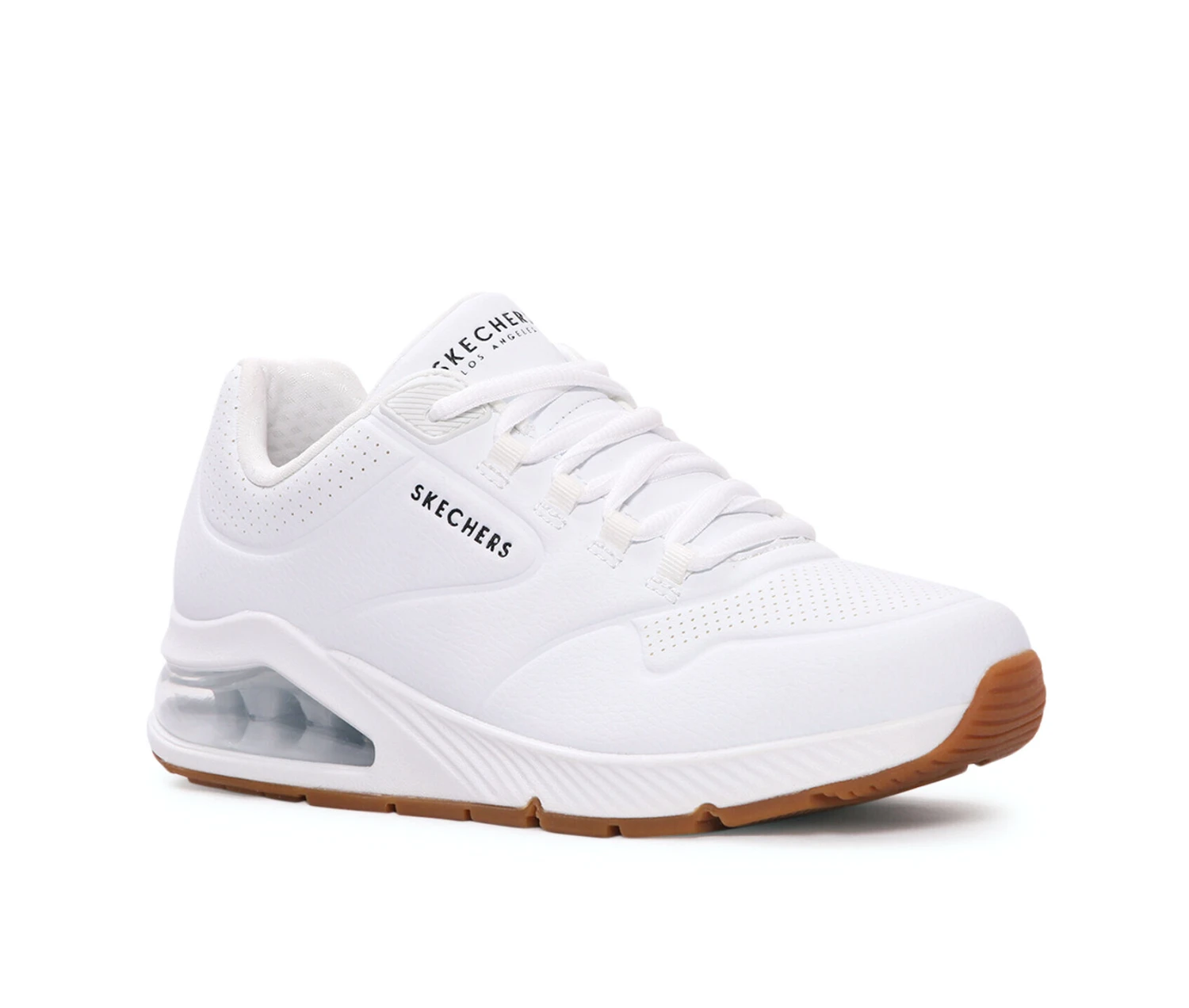 - Update your wardrobe with a boost of comfort wearing Uno 2 – Air Around You. This fashion style features a synthetic perforated duraleather upper with contrast details, Skechers Air-Cooled Memory Foam insole, and a platform wedge with a visible Skech-Air air-cushioned midsole.
