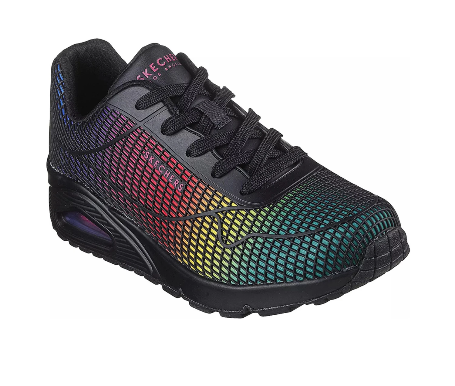 - Enjoy a study in contrasts with easy to wear comfort in the Street Uno – Eye Catching shoe. Layered synthetic and jersey fabric upper in a lace up classic fashion sneaker with stitching accents. Air-Cooled Memory Foam insole, visible air cushioned midsole.