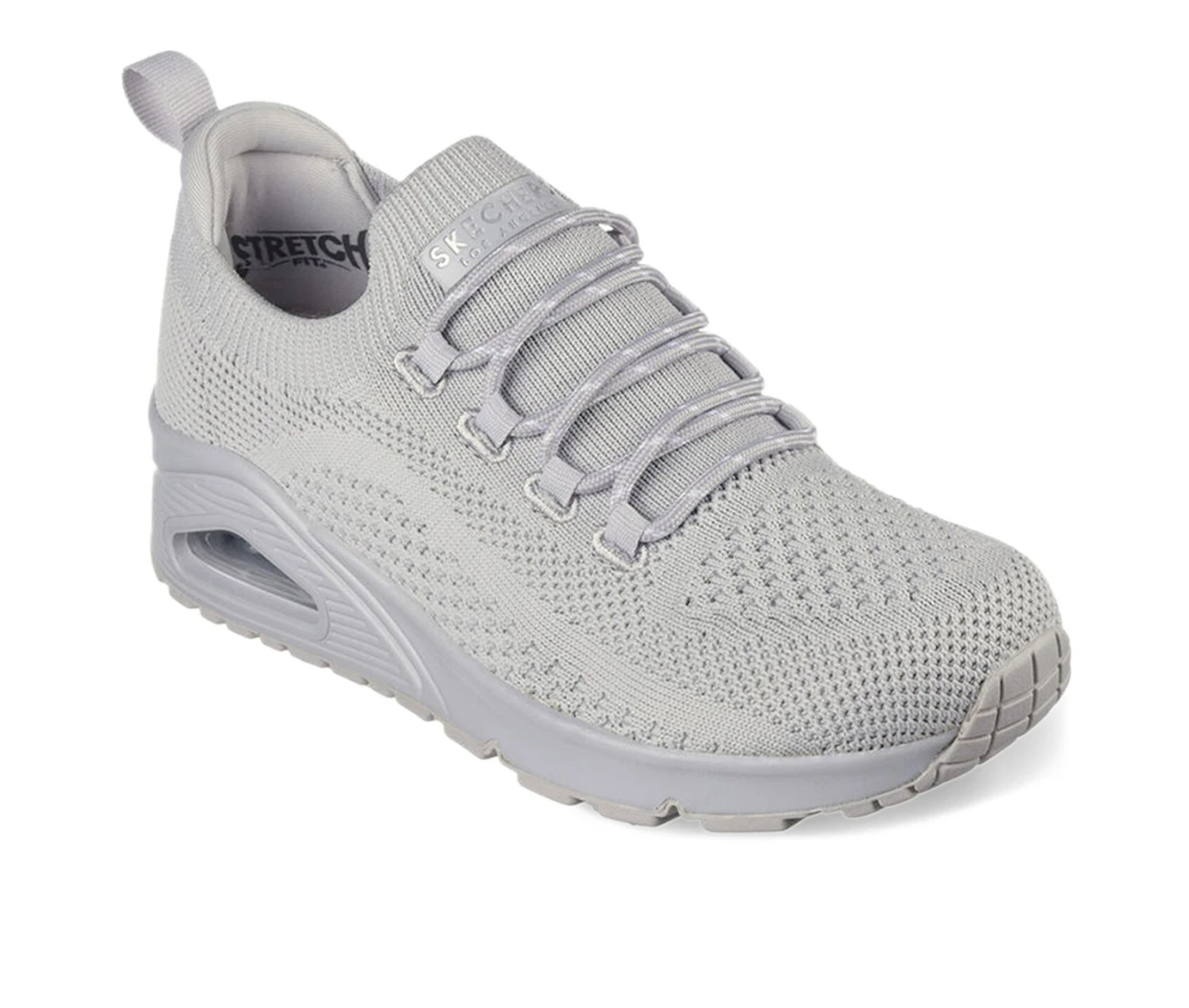 - Classic sporty style gets seamlessly sleek and comfortable in Street Uno – This and That. This slip-on fashion sneaker features an engineered knit and synthetic upper with an elasticized crisscross strap front, Air-Cooled Memory Foam insole, and a platform wedge with visible Skech-Air air-cushioned midsole.